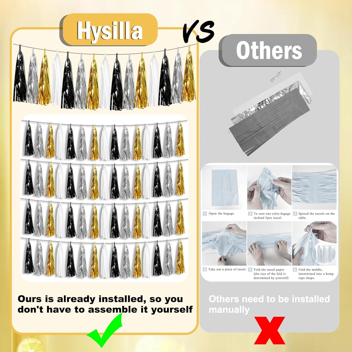 - 【Reusable Paper Material】: high-quality metallic foil tassel garlands, with the virtue of nice craftsmanship and lightweight, they are reusable and safe, and not easy to fade; They come with white ribbon for hanging, and garland tassels hang perpendicular to the string, and are adjustable to provide you with the option of spreading the tassels out or piecing them closer together.