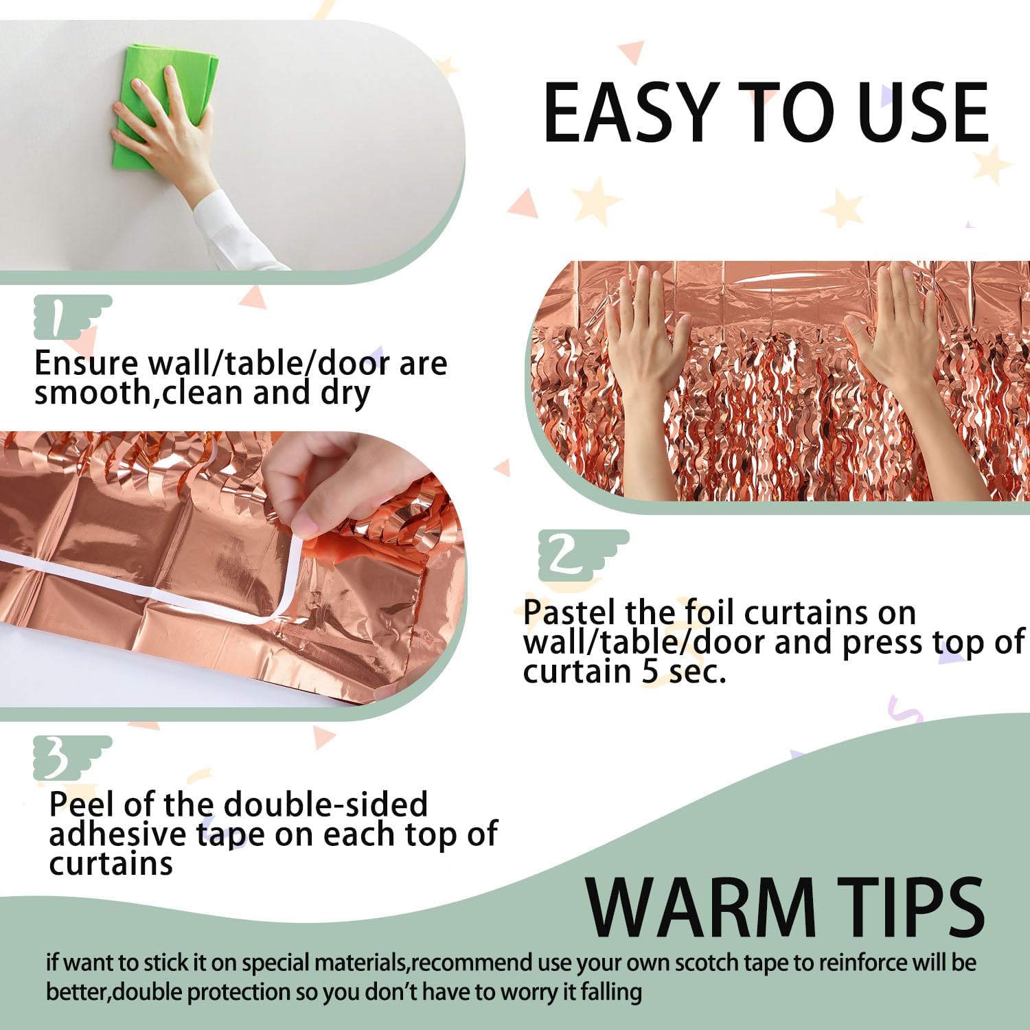 - Easy To Use: This foil backdrop comes with double sided tape on the back of them, what you need to do is just gently take it out of the package, peel the tape off then paste the fringe curtain on the top of wall or door