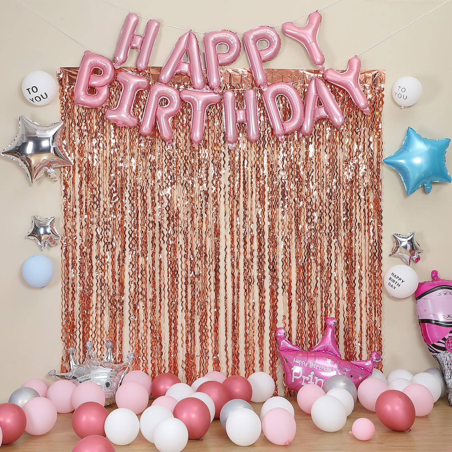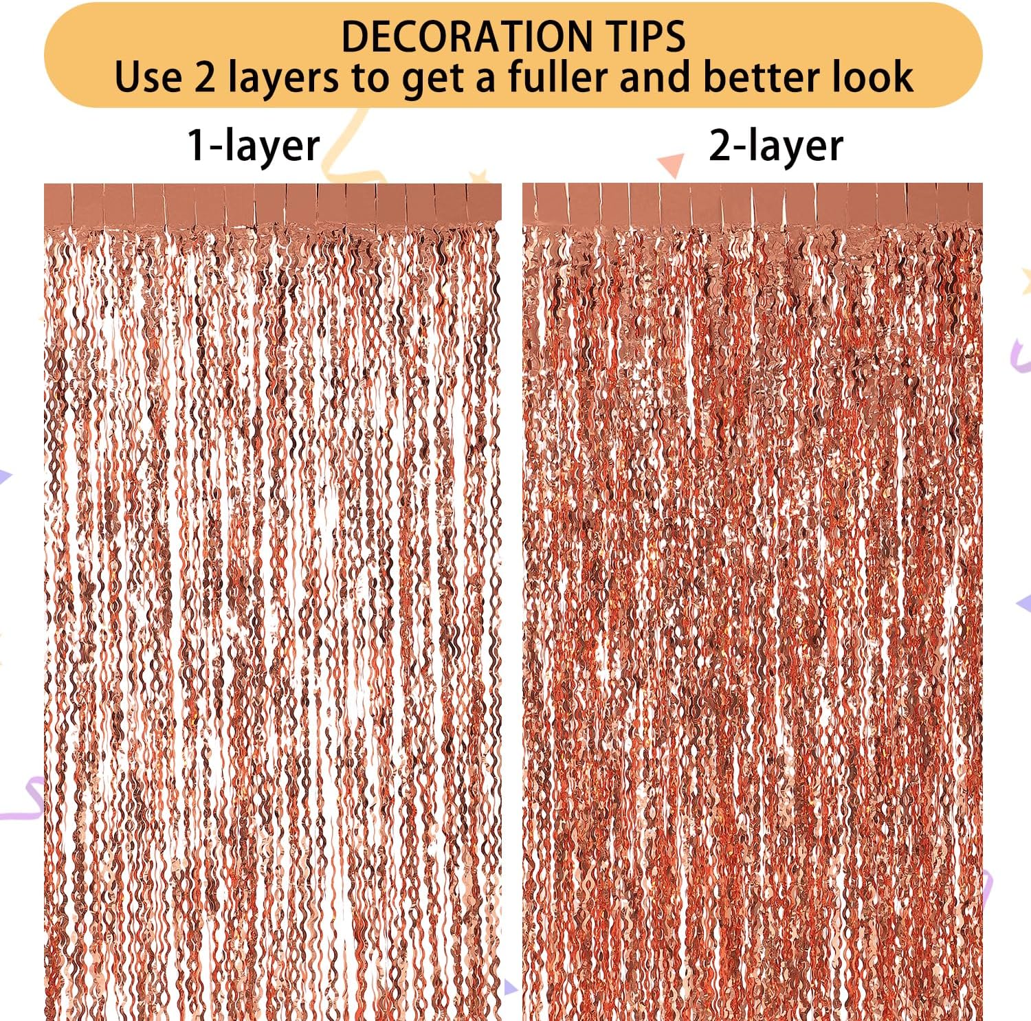 Wavy Fringe Curtain - Rose Gold, 3.3 ft x 6.6 Feet, Pack of 3 | Party Decorations, Streamers for Birthday Backdrop