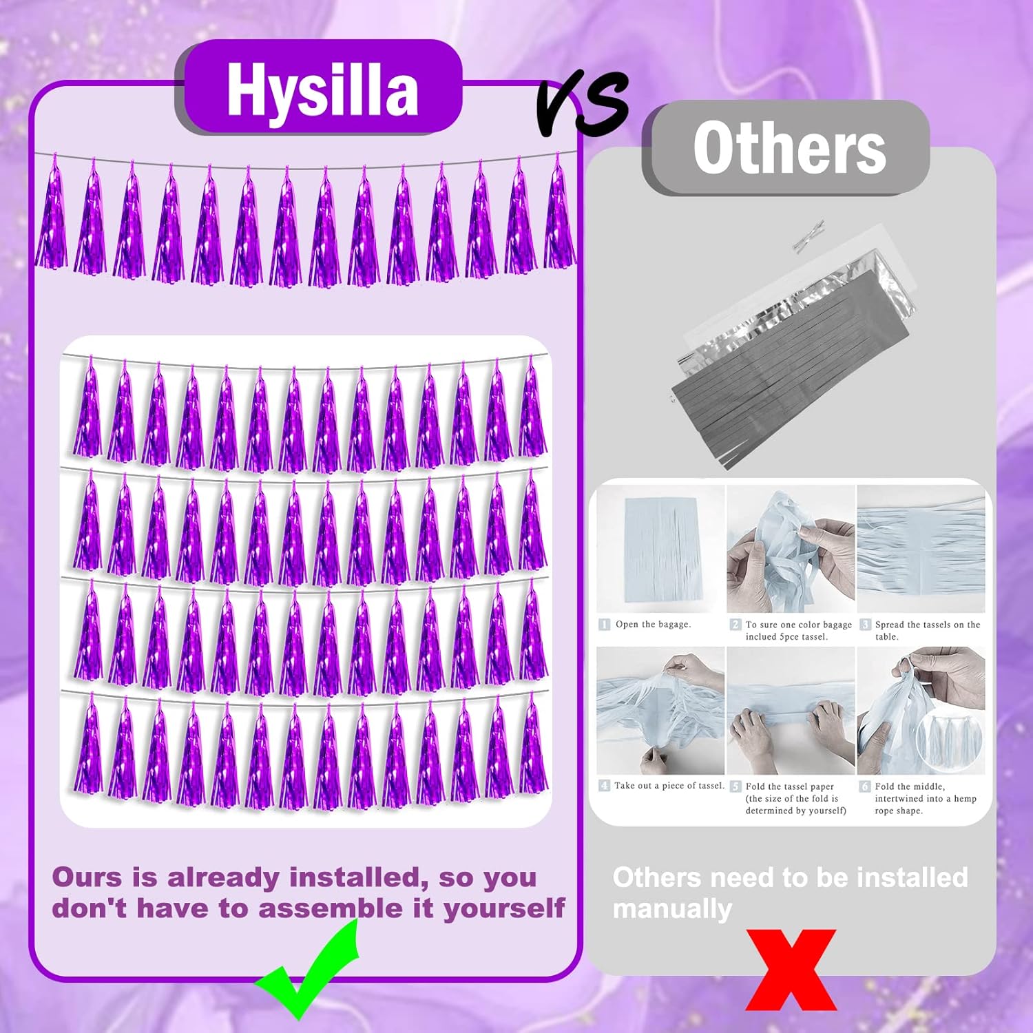 - 【Purple Party Supplies Set】: The total length of the purple birthday tassels banner is 59 feet, divided into 6 strips, each 9.8 feet long. Each banner contains 15 tassels, and each tassel measures 14 inches, for birthday decorations many occasions, and so on