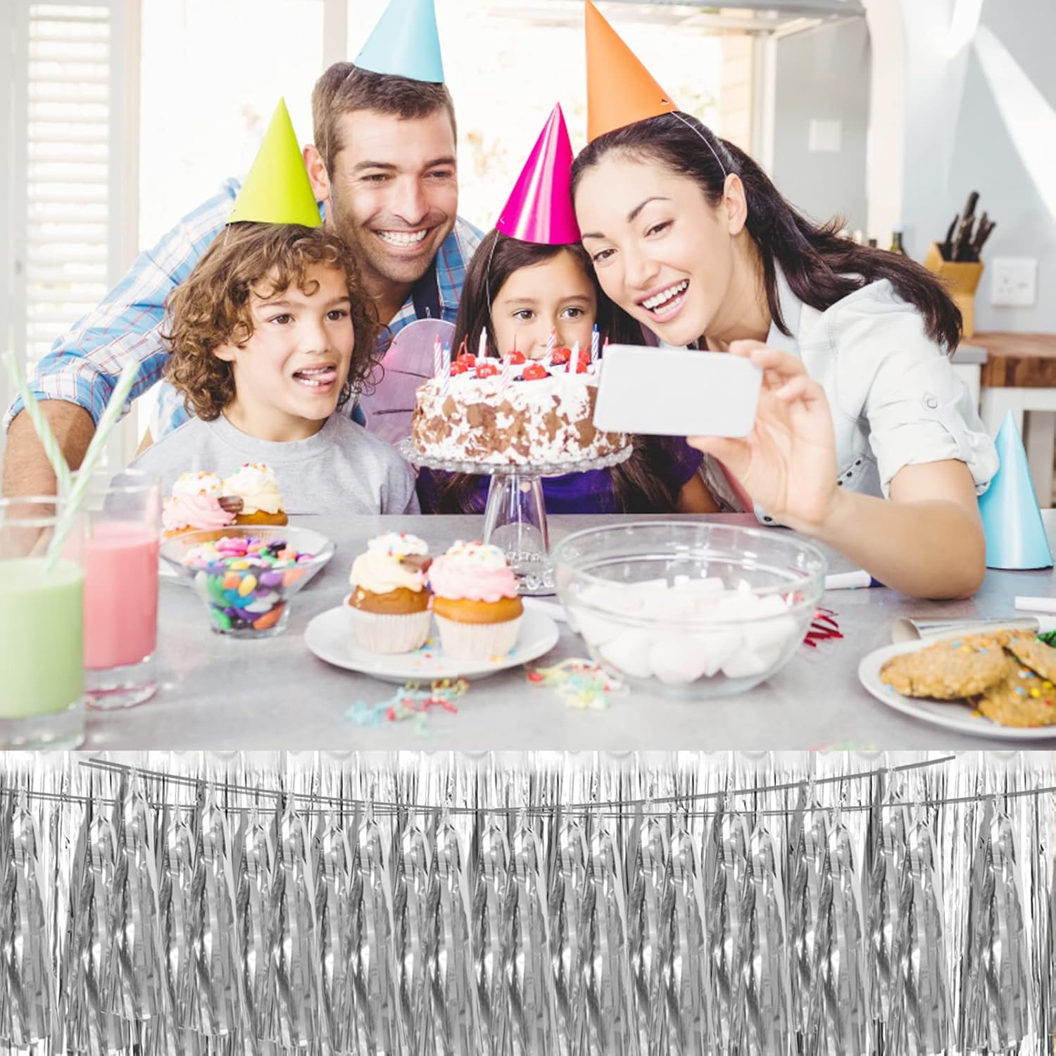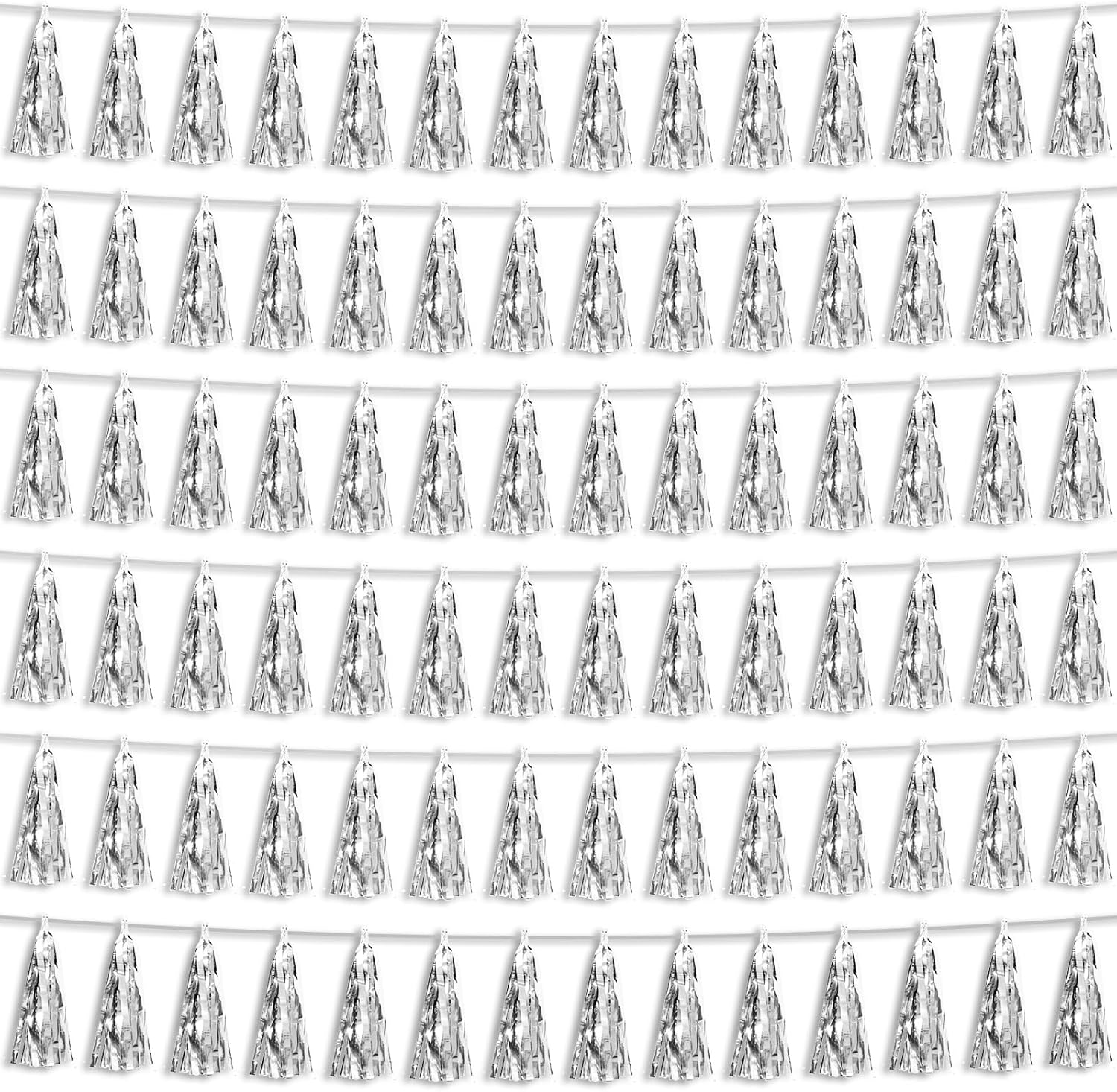 - 【Silver Party Supplies Set】: The total length of the silver birthday tassels banner is 59 feet, divided into 6 strips, each 9.8 feet long. Each banner contains 15 tassels, and each tassel measures 14 inches, for birthday decorations many occasions, and so on