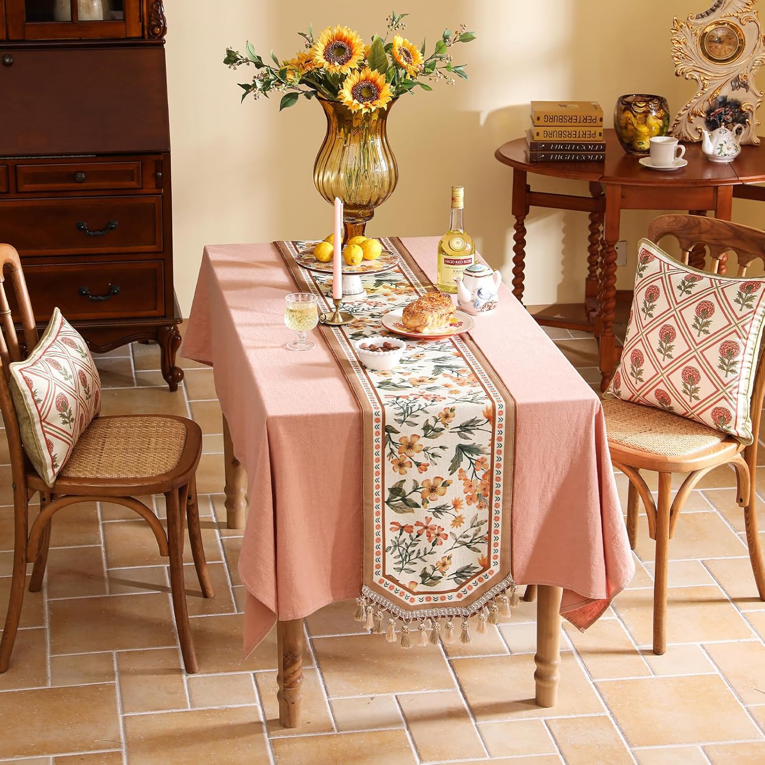 Vintage Linen Table Runner,Floral Table Runners 87 Inches Long,Soft and Luxury Coffee Table Runners.Decoration Tabletop for Kitchen,Dining,Party,Home,Christmas,12"*87"