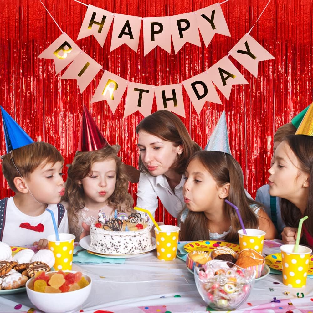 3 Pack Red Party Backdrop Tinsel Streamers Christmas Decorations Foil Fringe Backdrop Curtains Carnival Casino Theme Birthday New Year Holiday Celebration Bachelorette Party Decorations Supplies