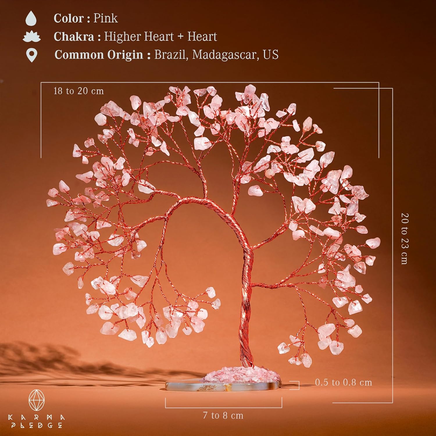 - ROSE QUARTZ CRYSTAL TREE: Rose quartz is widely known as the stone of Love and is associated with unconditional love, compassion, and emotional . The serene presence of the rose quartz crystal tree can create a peaceful and nurturing environment. Helps to replace negative emotions with positive, returning the wearer to that place of pure love and balance.