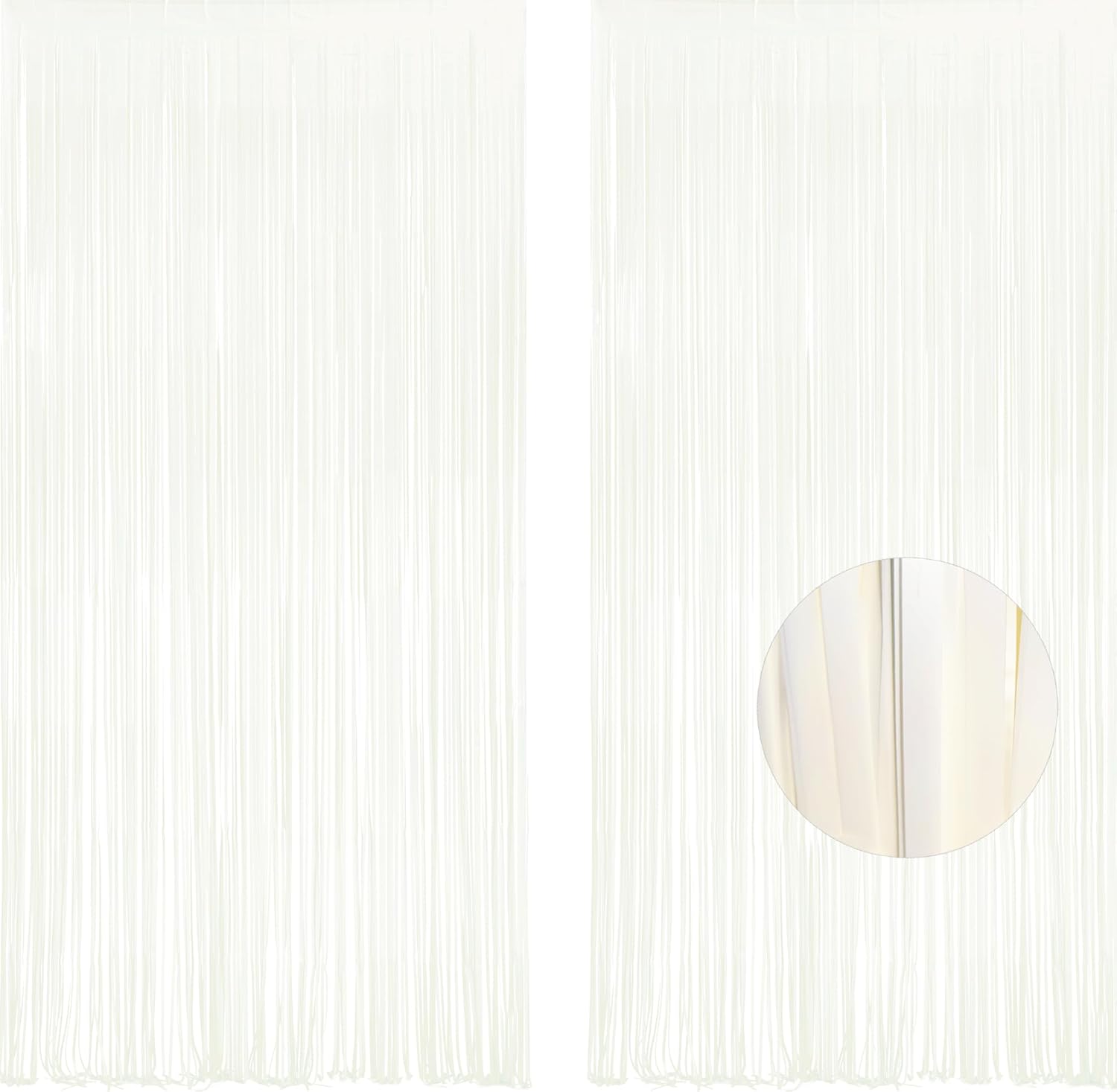 White Party Streamers Decoration - GREATRIL Foil Fringe Backdrop for Daisy Groovy Birthdays/Anniversary/Graduations/Bridal Shower/Cocktail/Prom/Gala - 3.2ft X 8.2ft - 2 Packs