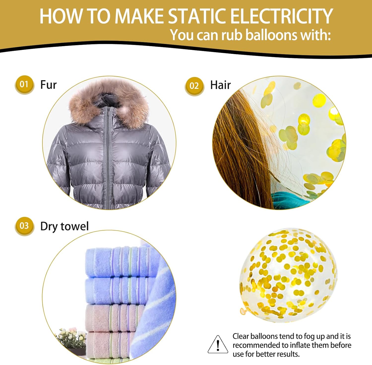 - 【Multipurpose】You can these balloons make black white gold balloon garland kit, After blowing up the confetti balloons, rubbing the balloon on the hair or fabric and shaking it will help the confetti stick to the side, which can make the balloon look more beautiful. When the party is over, you can pop the balloons to let the confetti fall, adding fun to the party.