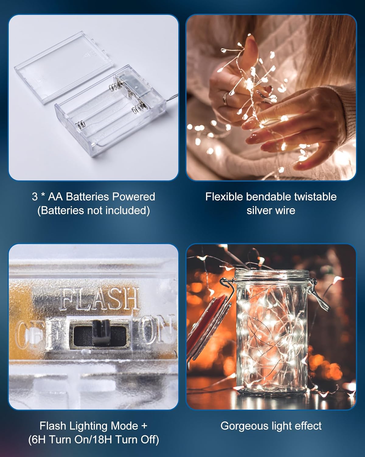 - Brighter Lights: 5 feet 3 x AA battery operated twinkling firecracker cluster lights, the luminous miniature LED light looks like a drop of light attached to a shiny wire, with a steady 360-degree viewing angle they illuminate in every direction