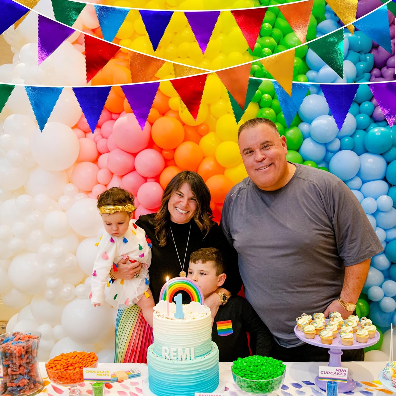 - 🔴PACKAGE CONTAINS- 1 packs of rainbow party metallic fabric pennant banner, Total 9.5meter/31feet with 35pcs flags.Size of each flag is 7.9 x 5.9 inch.