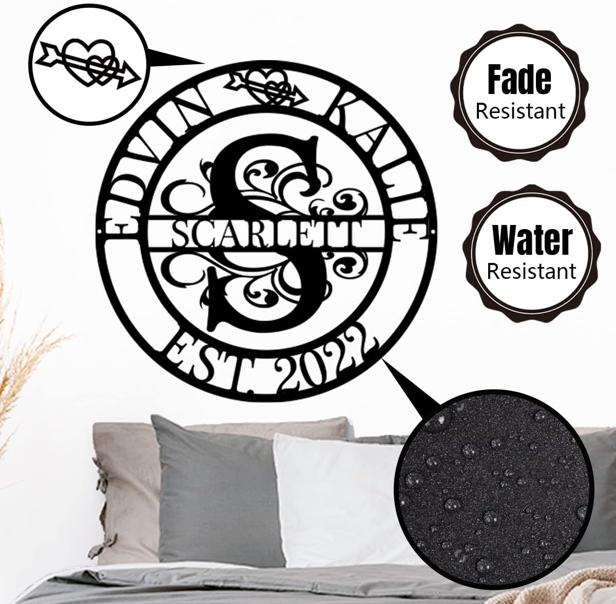 Custom Metal Sign, Personalized Metal Last Name Sign, Established Sign, Initial Name Sign, Outdoor Metal Sign, Family Name Sign,Split Letter Monogram Wall Decor,Housewarming Wedding Gift, Couples