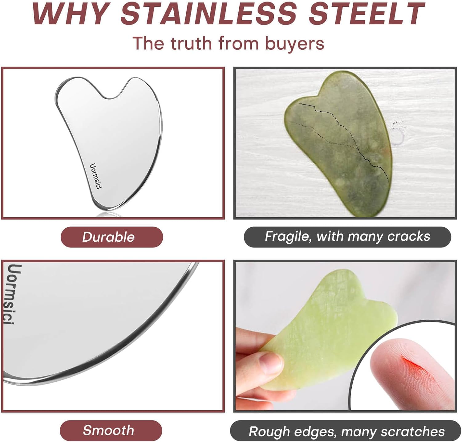 • ✅【SANITARY】The surface and edges of this stainless steel gua sha facial tool are smooth, without any grooves where dirt can get in.