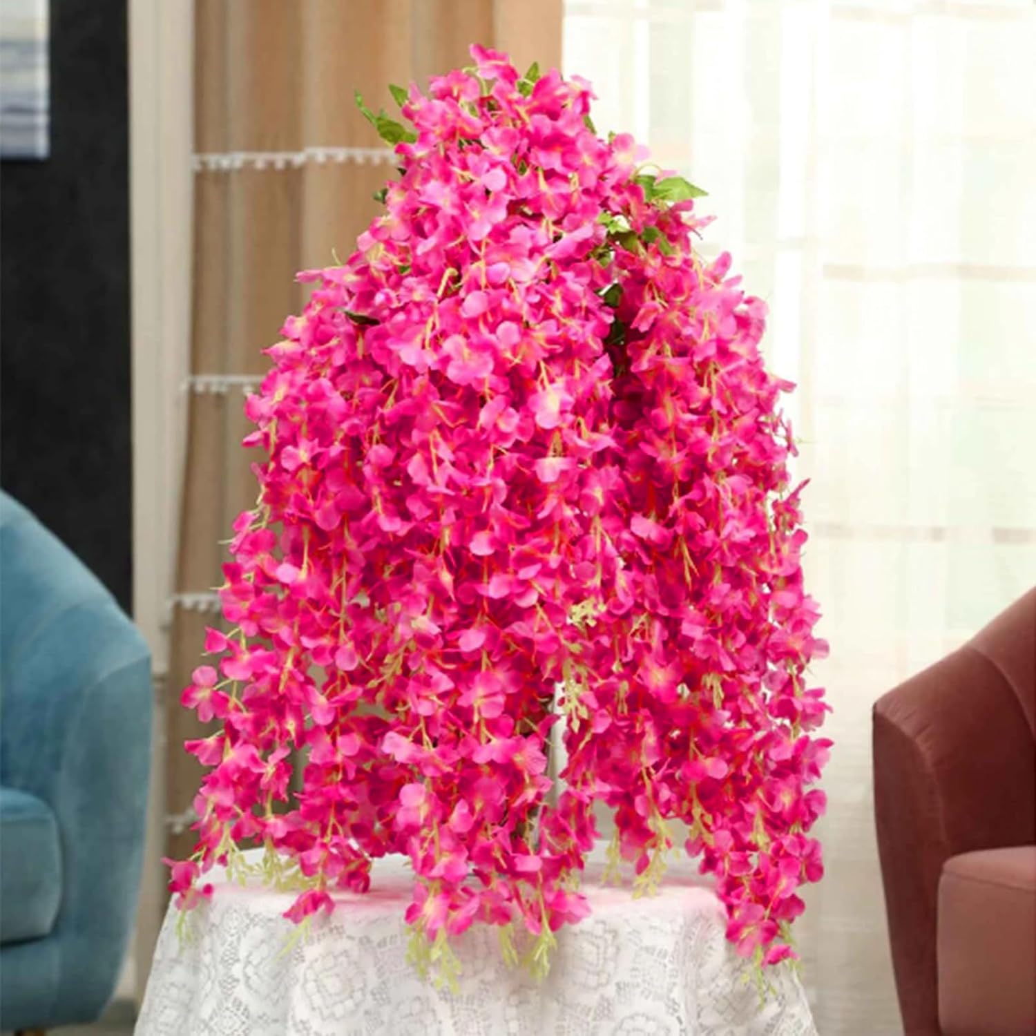 - 【Package Included】5 pieces of silk fuchsia wisteria hanging flowers, each length 45.27 inches. Every artificial wisteria garland has 3 branches and 6 leaves, the wisteria flower petal length is 23.62 inches. (Note: There may be some color differences in different lights)