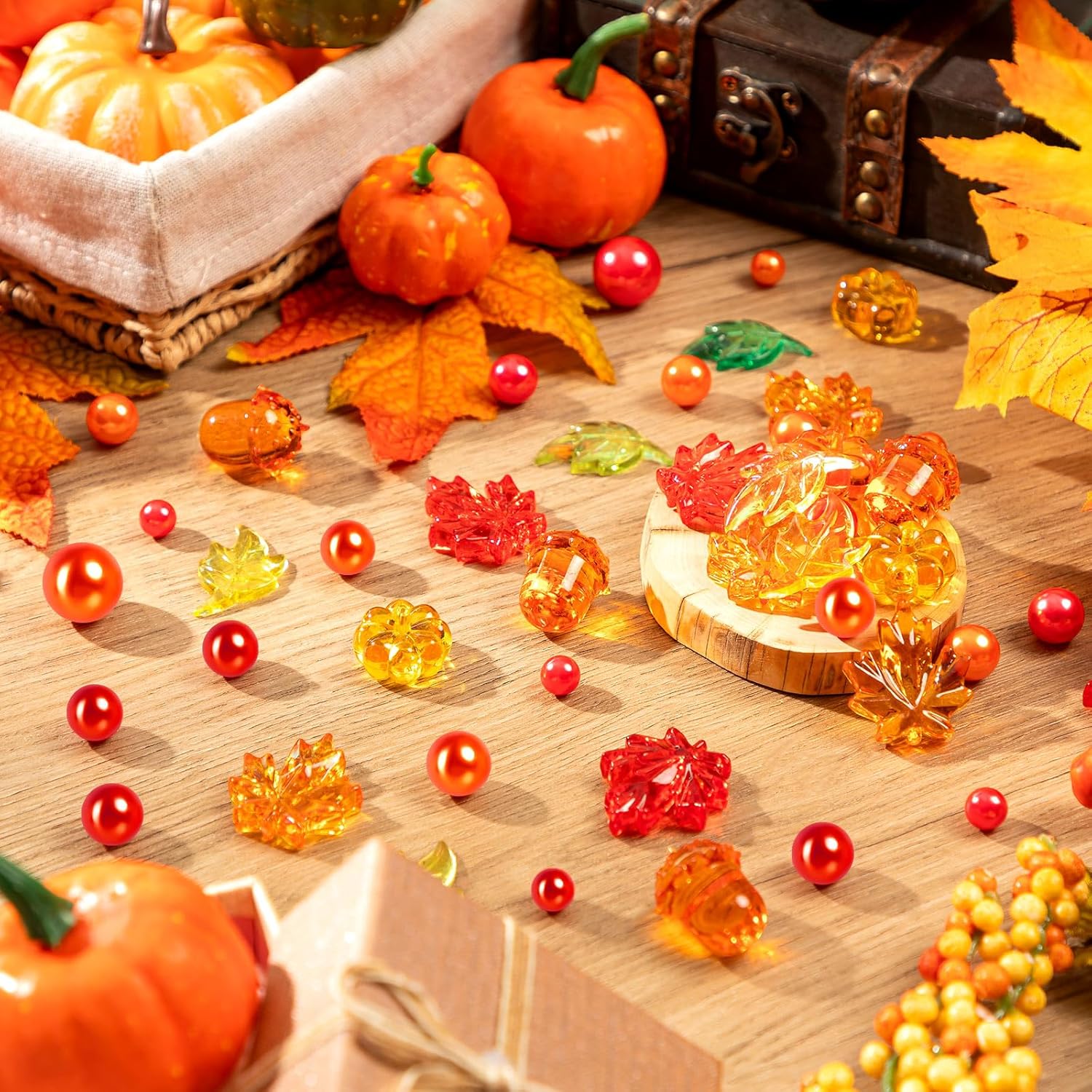 120Pcs Fall Vase Filler, Thanksgiving Faux Pearls for Vase Filler for Vases for Thanksgiving Halloween Fall Table Centerpieces