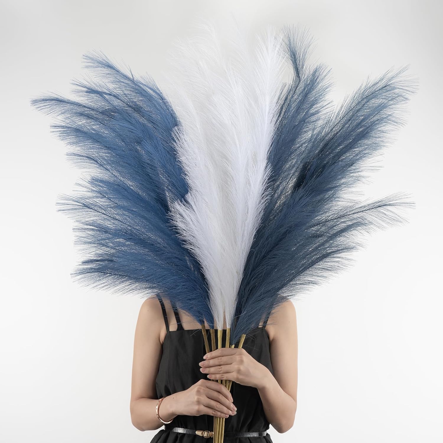 - Warm Color& Good Texture Pompous Grass: It comes with 6 long stems of extra fluffy and tall faux pampas grass They're nice and full and have a really impressive appearance, nicely with a variety of decorations! Packaging with box to avoid crushing during transit, hold their shape very well