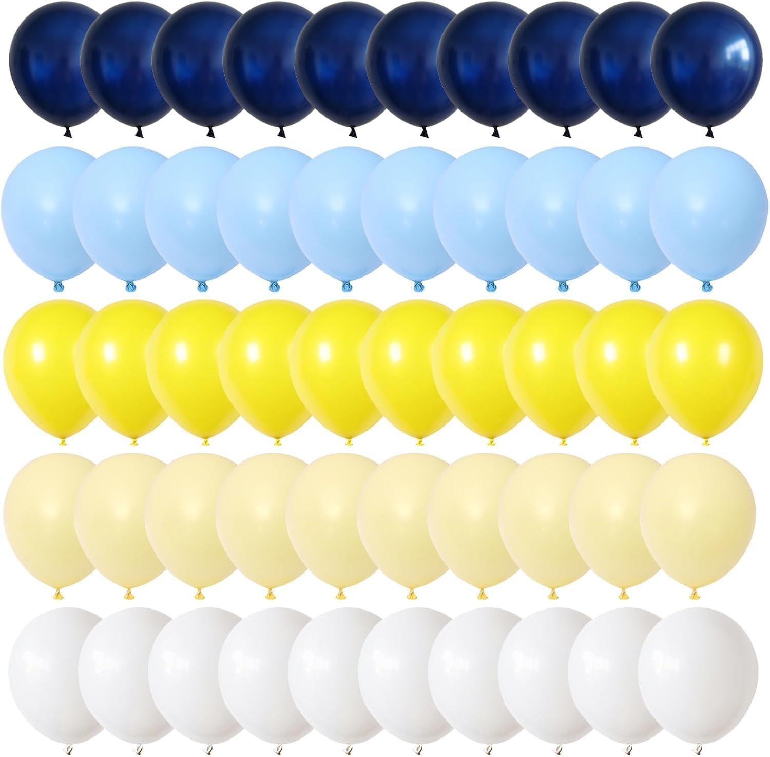 - Wide Application: Blue yellow white balloons are suitable for many occasions, such as boys girls birthday party, wedding, graduation, truck office party deco, gender reveal parties, New Year party, Christmas, Halloween, baby & bridal shower, and more. With ample quantities, it can be easily matched with them arches, suitable for outdoor or indoor.
