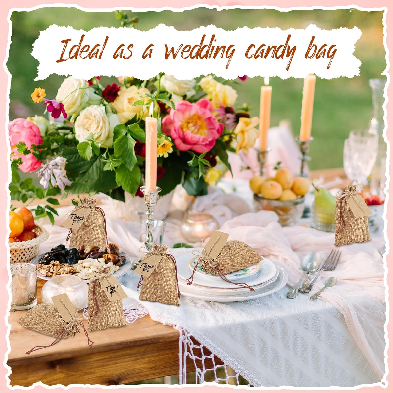 - Included Components : 100 Pcs Burlap Gift Bags, Tags, 1 Bundle Hemp Rope