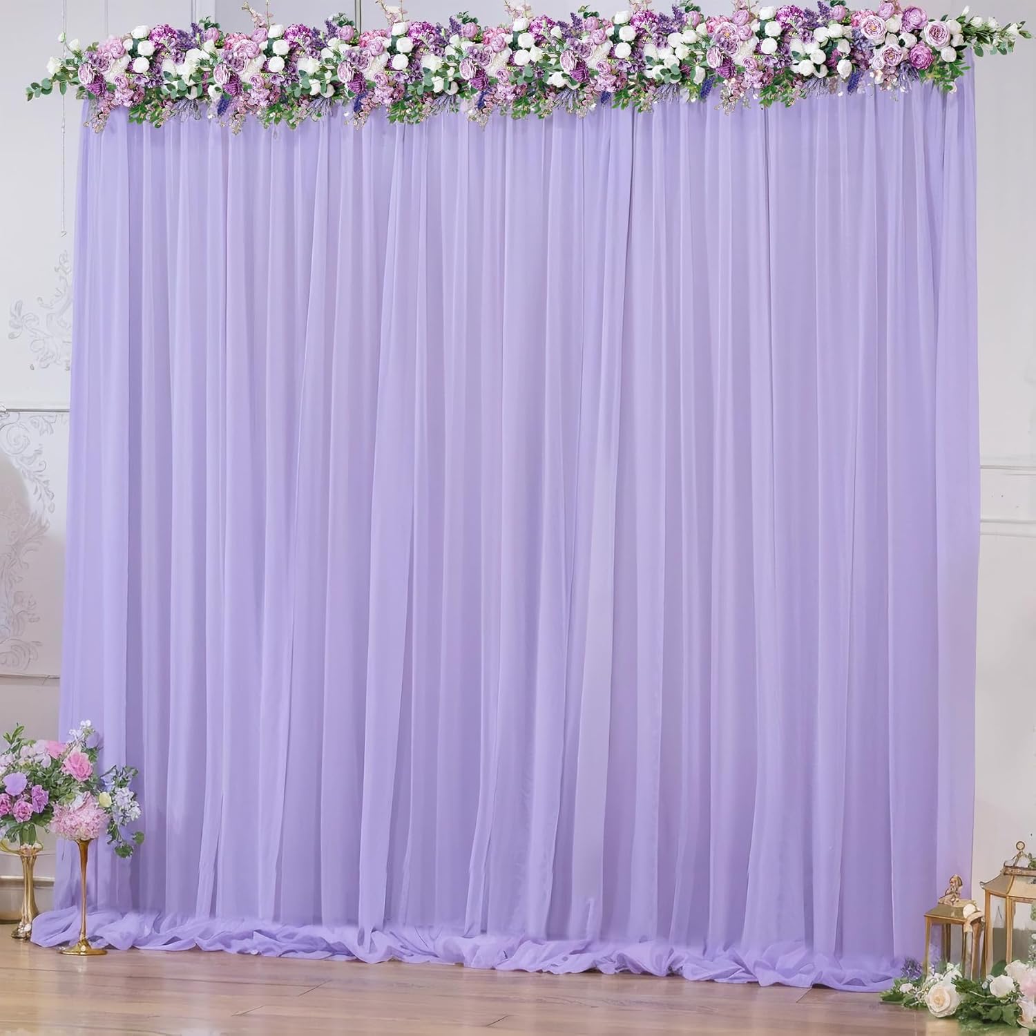- 【Multiple Use Light Curtain Backdrop】These purple sheer backdrop curtains are applicable for any indoor and outdoor occasions. Perfect for weddings arch, receptions, parties, bridal and baby showers, birthdays, candy buffets, dessert tables background, trade shows, wedding stages photography, photo booths, ceremony and more.