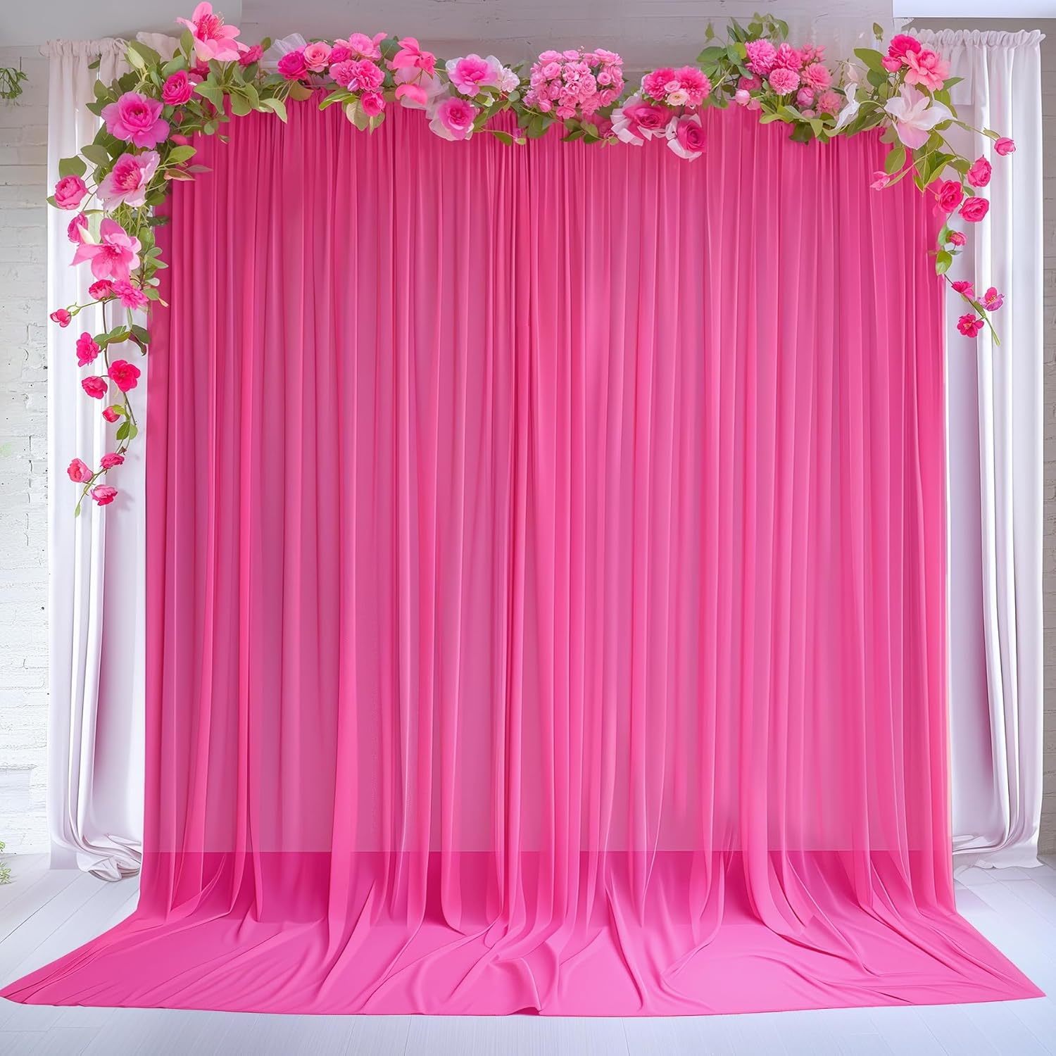 10ft x 10ft Hot Pink Backdrop Curtains, Wrinkle-Free Sheer Chiffon Fabric Photo Backdrop Drapes for Wedding Arch Party Ceremony Stage Photography Decorations