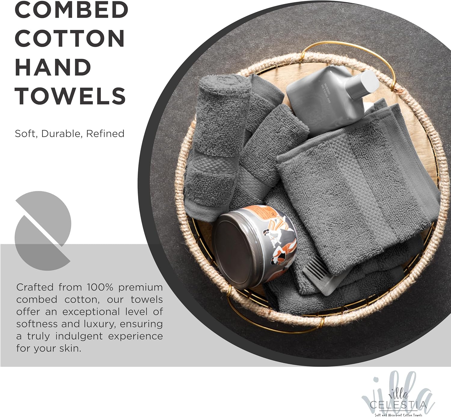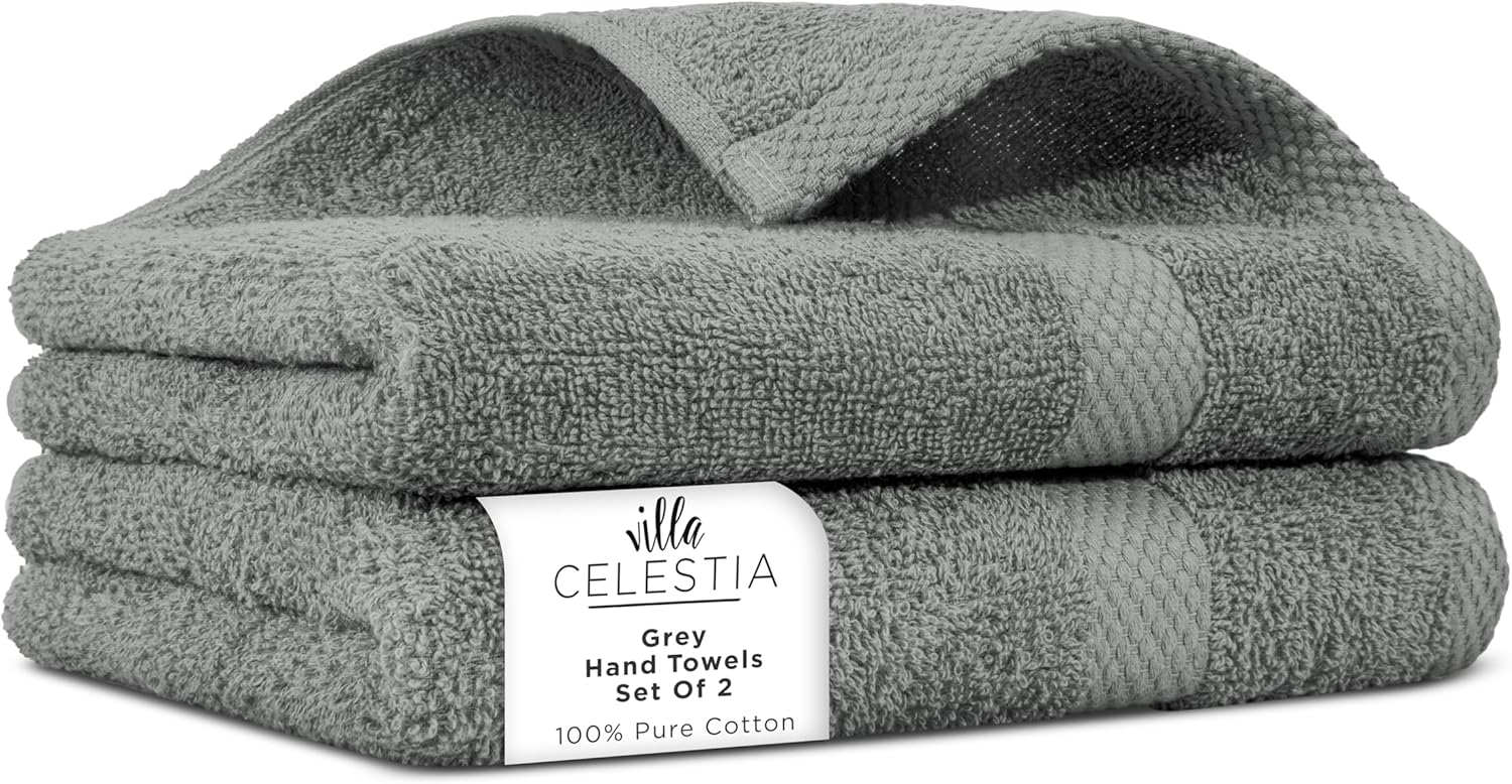 100% Cotton Hand Towel Set of 2, (16 x 28 inches) Sustainable, Soft, Highly Absorbent, Quick Drying, Combed Cotton Hand Towels Pack of 2 Ideal for Hotels, Spa, Bathroom, Dorm, Grey