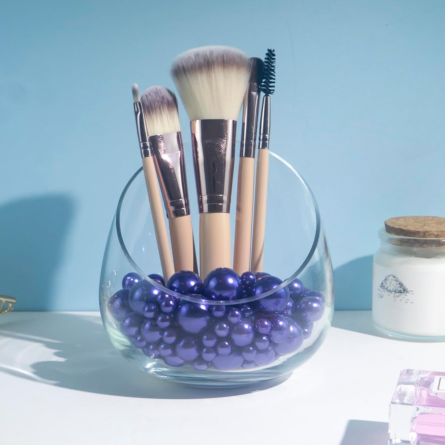 150Pcs Dark Purple Polished No Hole Faux Pearl Beads for Vase Filling Decorations, Plastic Pearls Vase Fillers, Table Scatters, Wedding Centerpiece, Home Decor, 8/14/20 mm