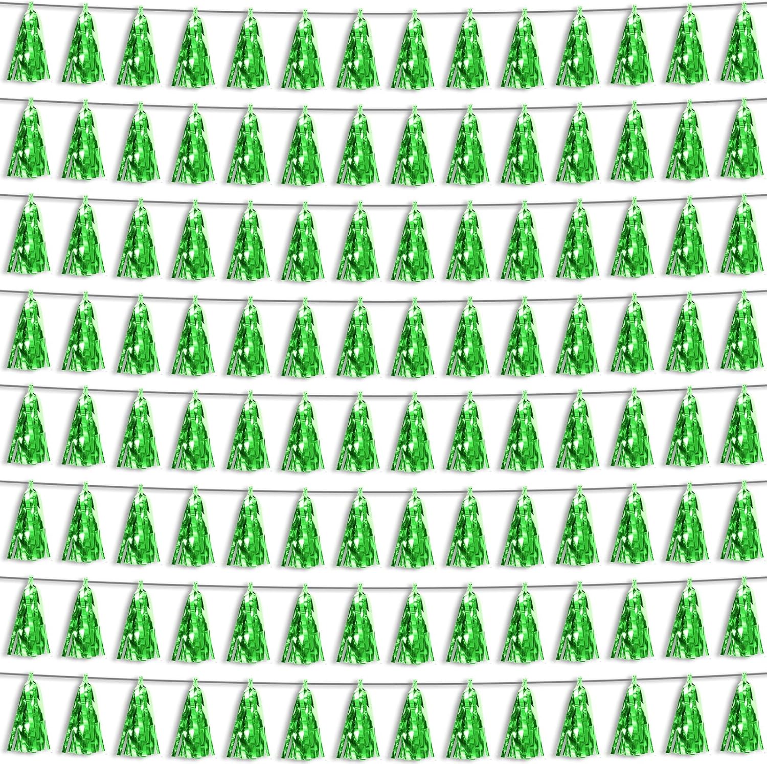 8P Green Foil Fringe Metallic Tassel Streamers Banner Tassel Garland for Parade Floats, Bachelorette, Wedding, Birthday, Halloween, Christmas, Bridal/Baby Shower Party Decorations