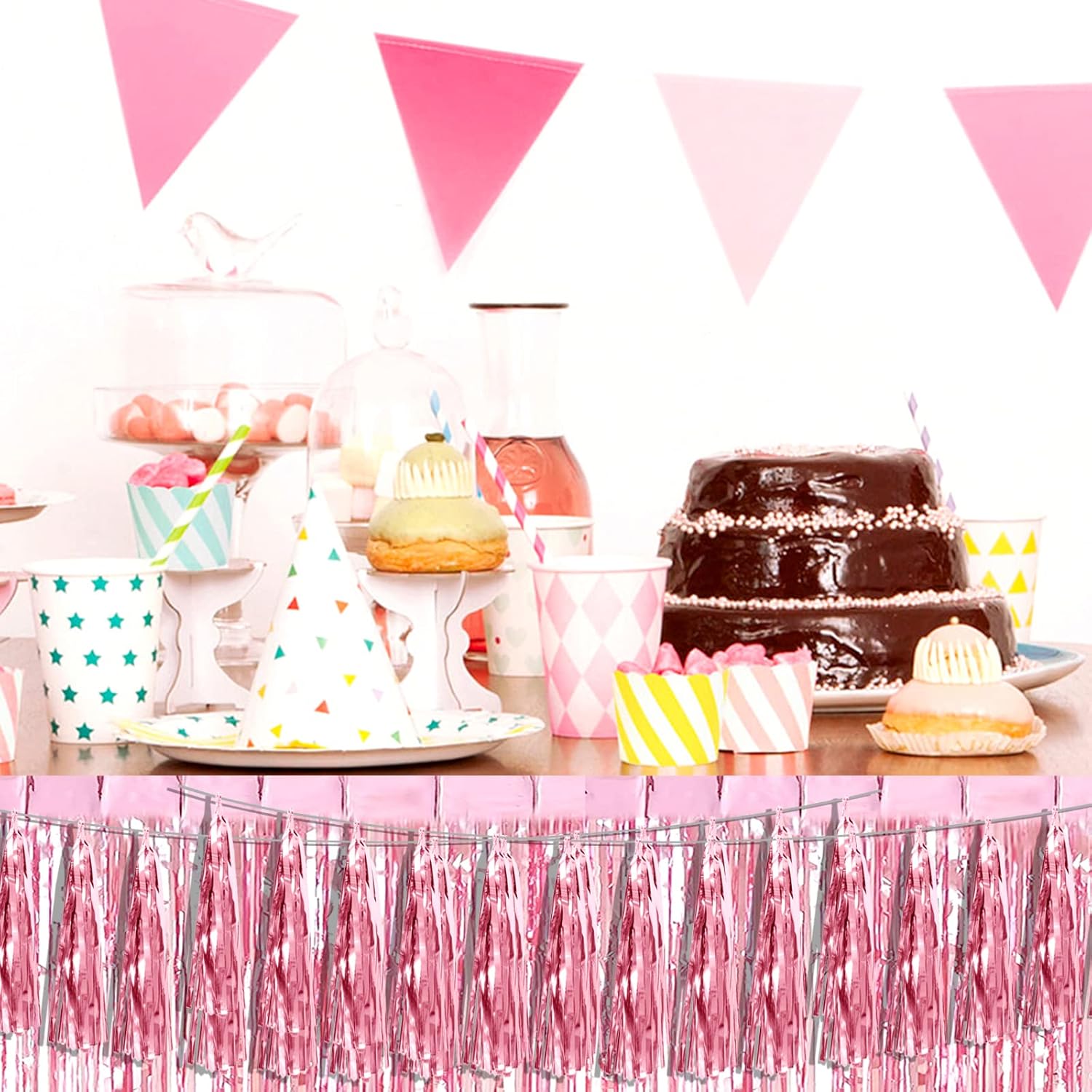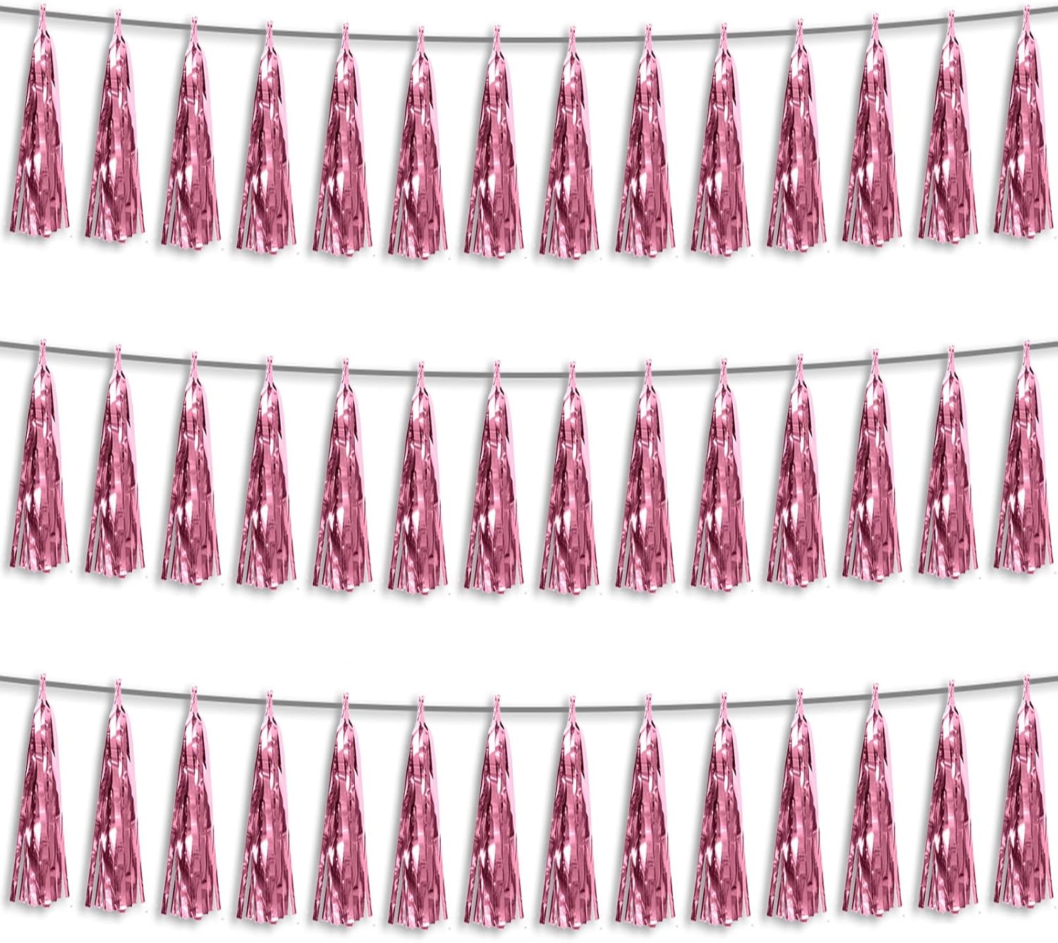 3P Light Pink Foil Fringe Metallic Tassel Streamers Banner Tassel Garland for Parade Floats, Bachelorette, Wedding, Birthday, Halloween, Christmas, Bridal/Baby Shower Party Decorations