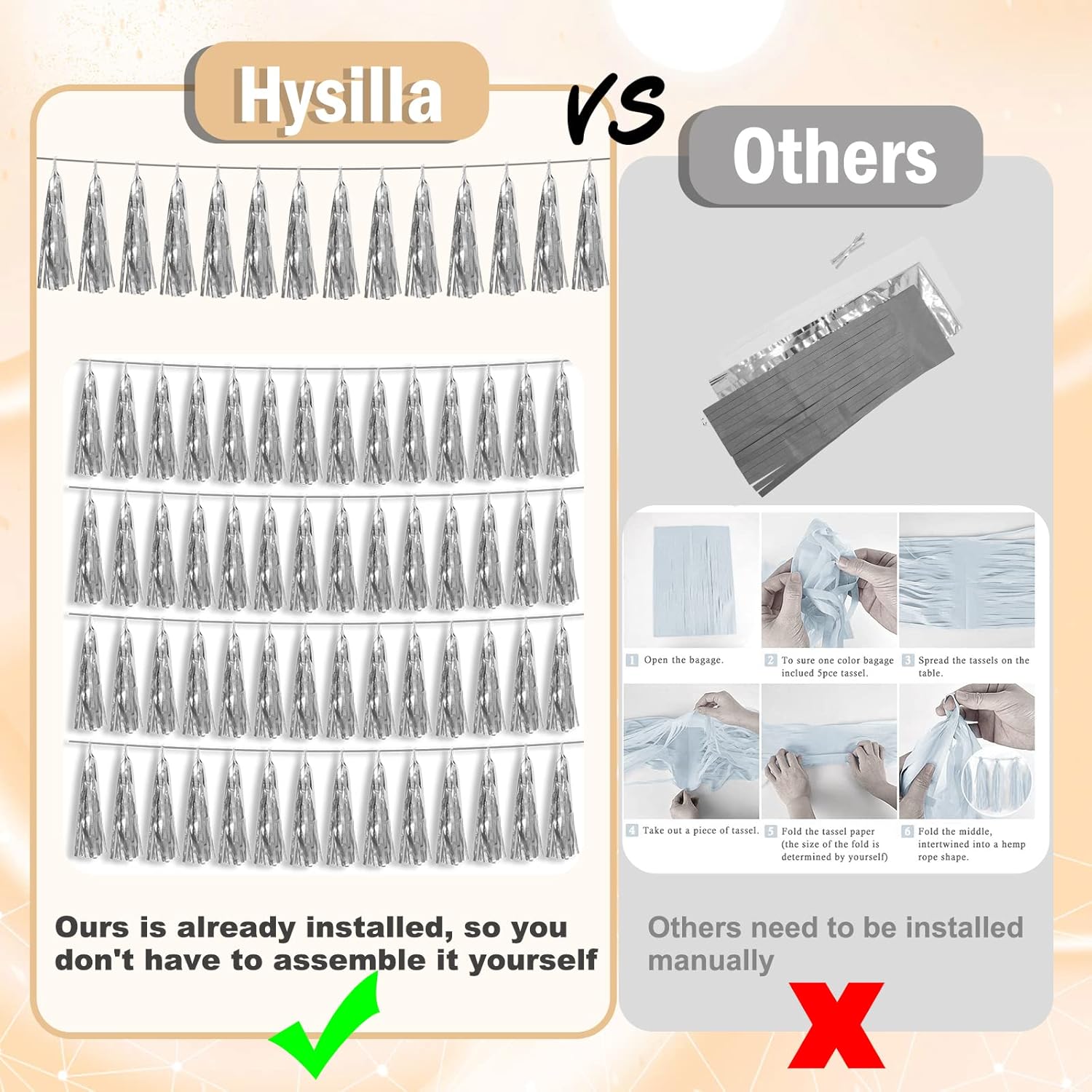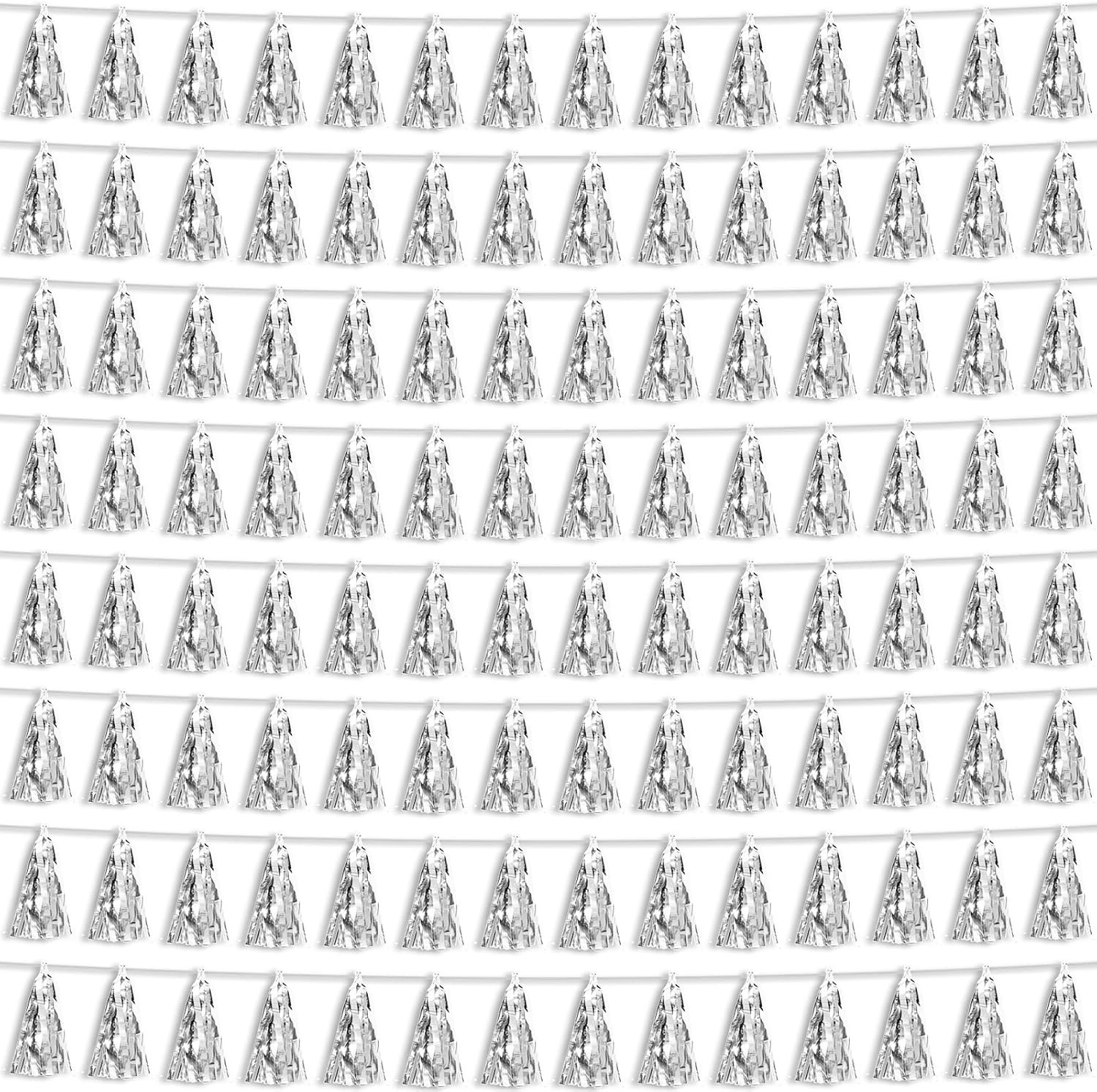 - 【Silver Party Supplies Set】: The total length of the silver birthday tassels banner is 78.7 feet 120tassels, divided into 8 strips, each 9.8 feet long. Each banner contains 15 tassels, and each tassel measures 14 inches, for birthday decorations many occasions, and so on