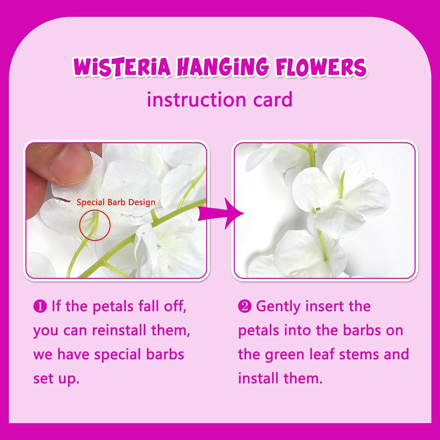 - 【Easy to Install】The purple red hanging garland flowers stem are made of durable metal wire and covered with plastic. You can bend the wisteria flower in any shape to satisfy your decoration imagination without damaging it. And the wisteria flower is very easy to install and remove, you can reduce a lot of troubles on installation.