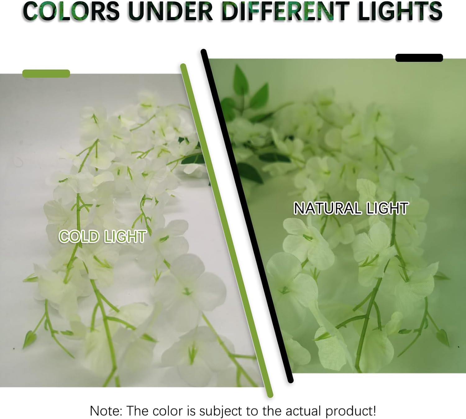 - 【Package Included】24 pieces of silk white green wisteria hanging flowers, each length 45.27 inches. Every artificial wisteria garland has 3 branches and 6 leaves, the wisteria flower petal length is 23.62 inches. (Note: There is a little green in the middle of the petals, and there may be some color differences in different lights)