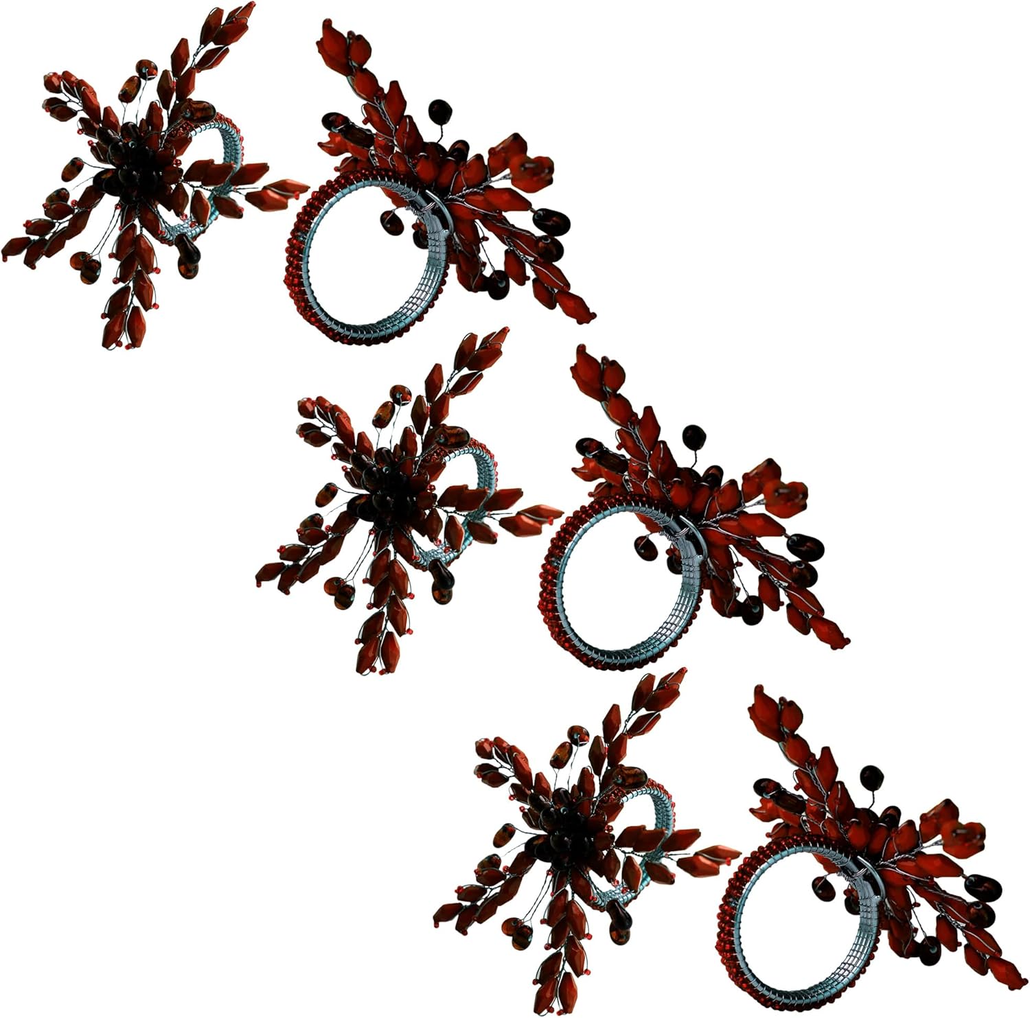 Napkin Rings Set of 12 for Dining Table Decoration Parties Everyday Metal Napkin Holder Leaf Wine (Pack of 12)
