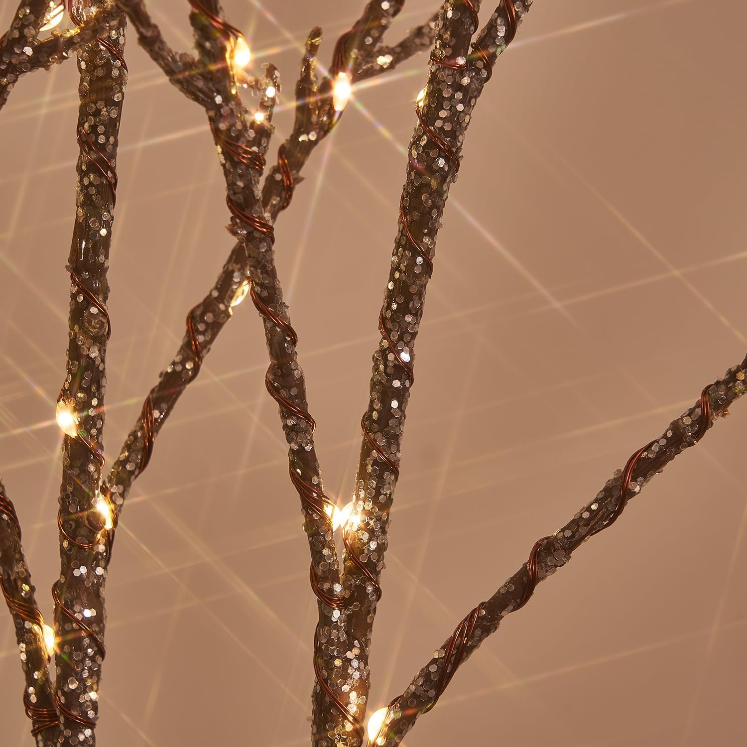 Hairui Lighted Willow Branches Silver Glittered 32IN 120 LED Fairy Lights with Timer, Twig Branch with Lights Battery Operated or USB Plug in for Home Fireplace Room Christmas Holiday Decoration