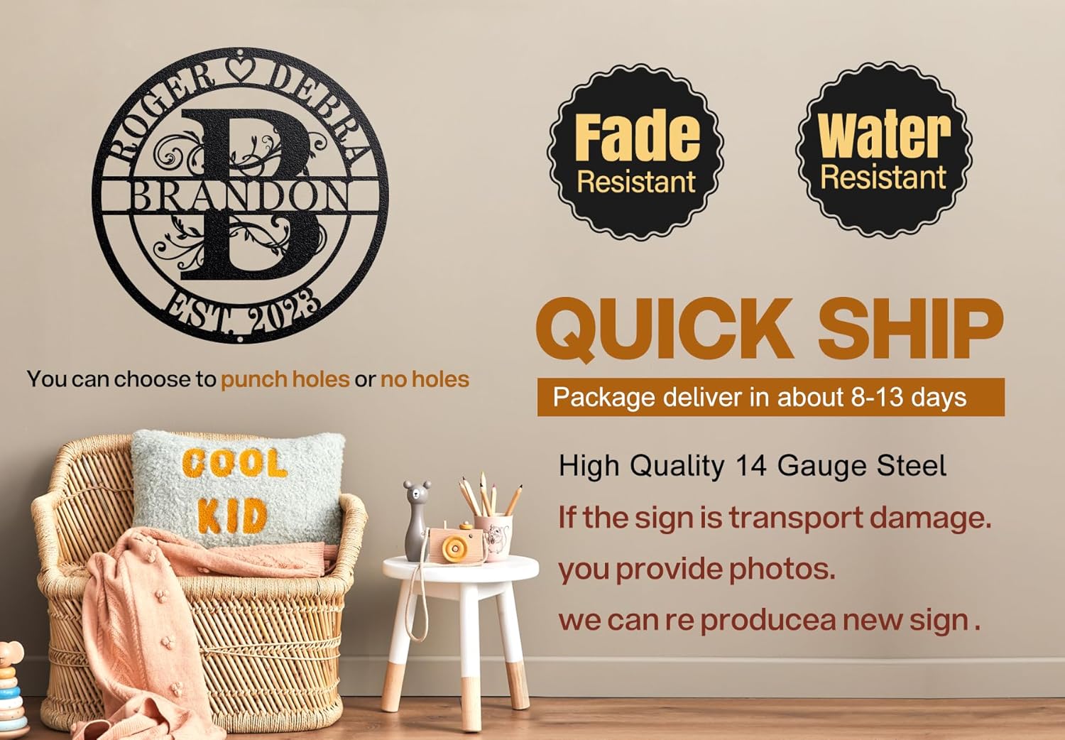 - No Brand Limitations: Regardless of the brand, our Custom Metal Name Sign is designed to adapt to any personal style. It's about you, your name, your style, and your love for unique and personalized décor.