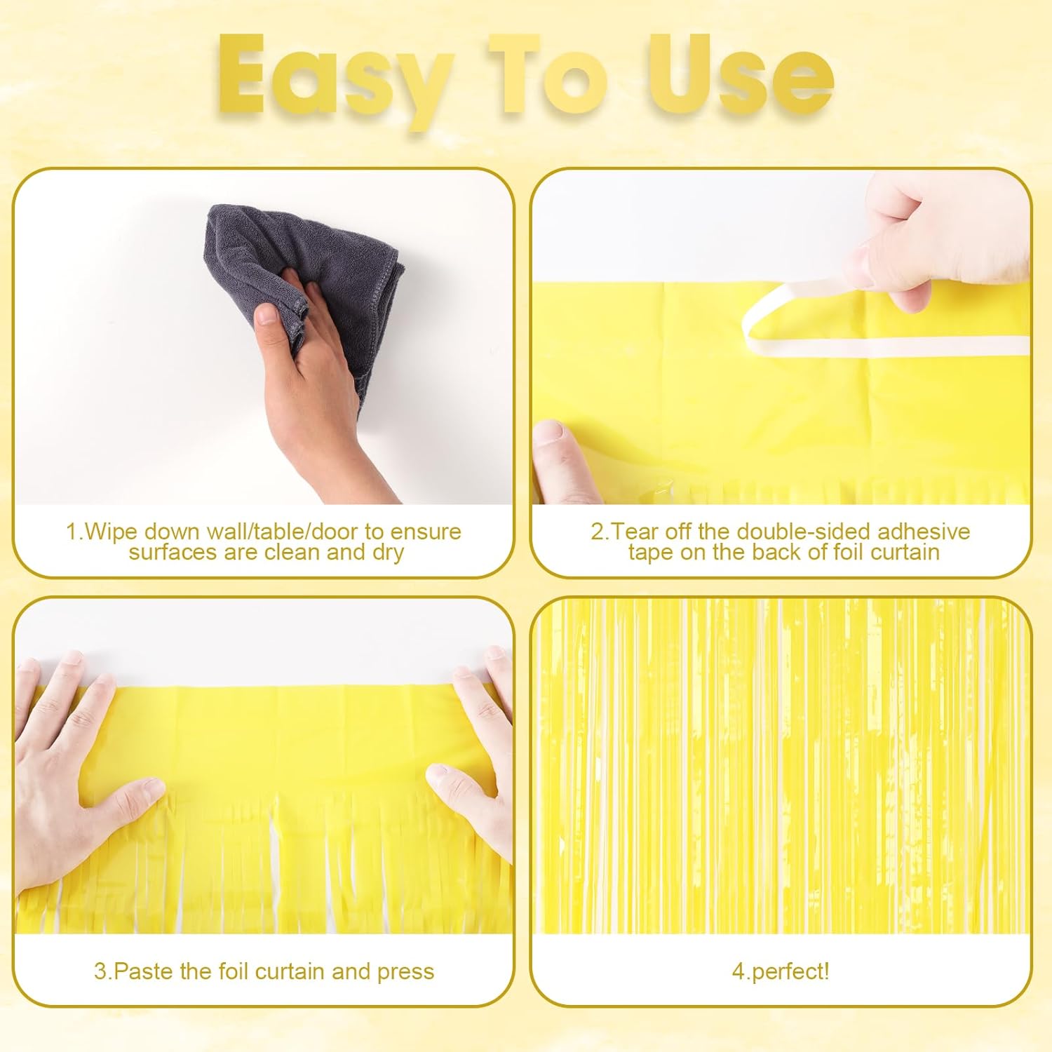 - Premium Material: This Pastel Yellow foil curtain backdrop is made of stable tinsel, non-fading, stay shiny and reusable. Unfold it and then enjoy your glittering party