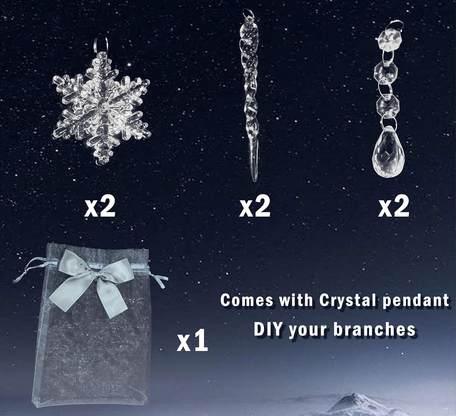 - ๐ Bendable twig branches: These branches are strong but flexible,so you can shape them as desired,also you can hang your little ornaments for holiday-themed decorations or year-round festive use indoor or outdoor.(come with a set of crystal Pendant)