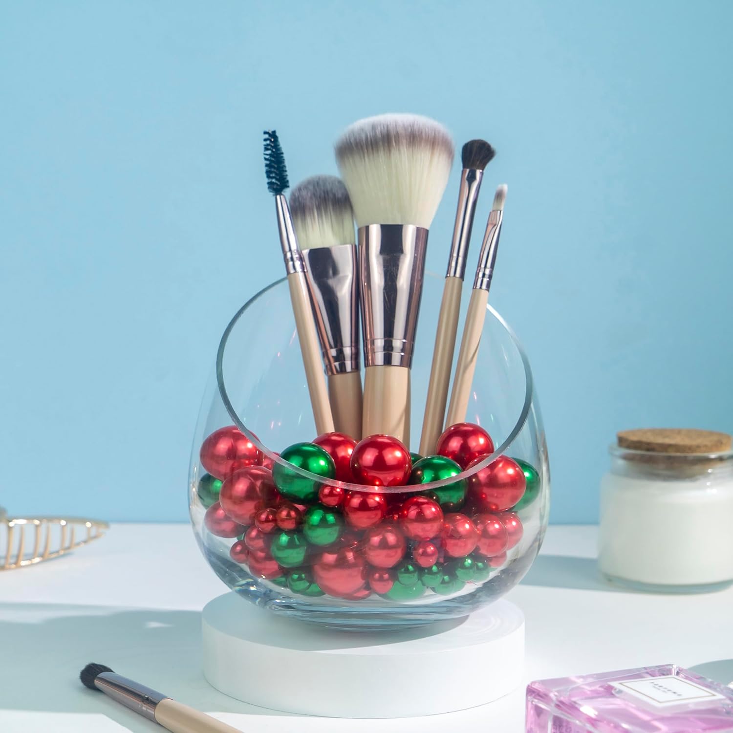 150Pcs Red&Green Polished No Hole Pearl Beads Vase Filler, Christmas Vase Filling Decorations, Plastic Pearls, Table Scatters, Wedding Home Decor, 8/14/20 mm