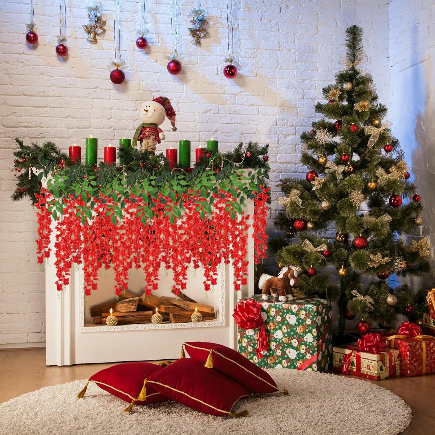 - 【Easy to Install】The red wisteria flower vines stem are made of durable metal wire and covered with plastic. You can bend the wisteria flower in any shape to satisfy your decoration imagination without damaging it. And the wisteria flower is very easy to install and remove, you can reduce a lot of troubles on installation.