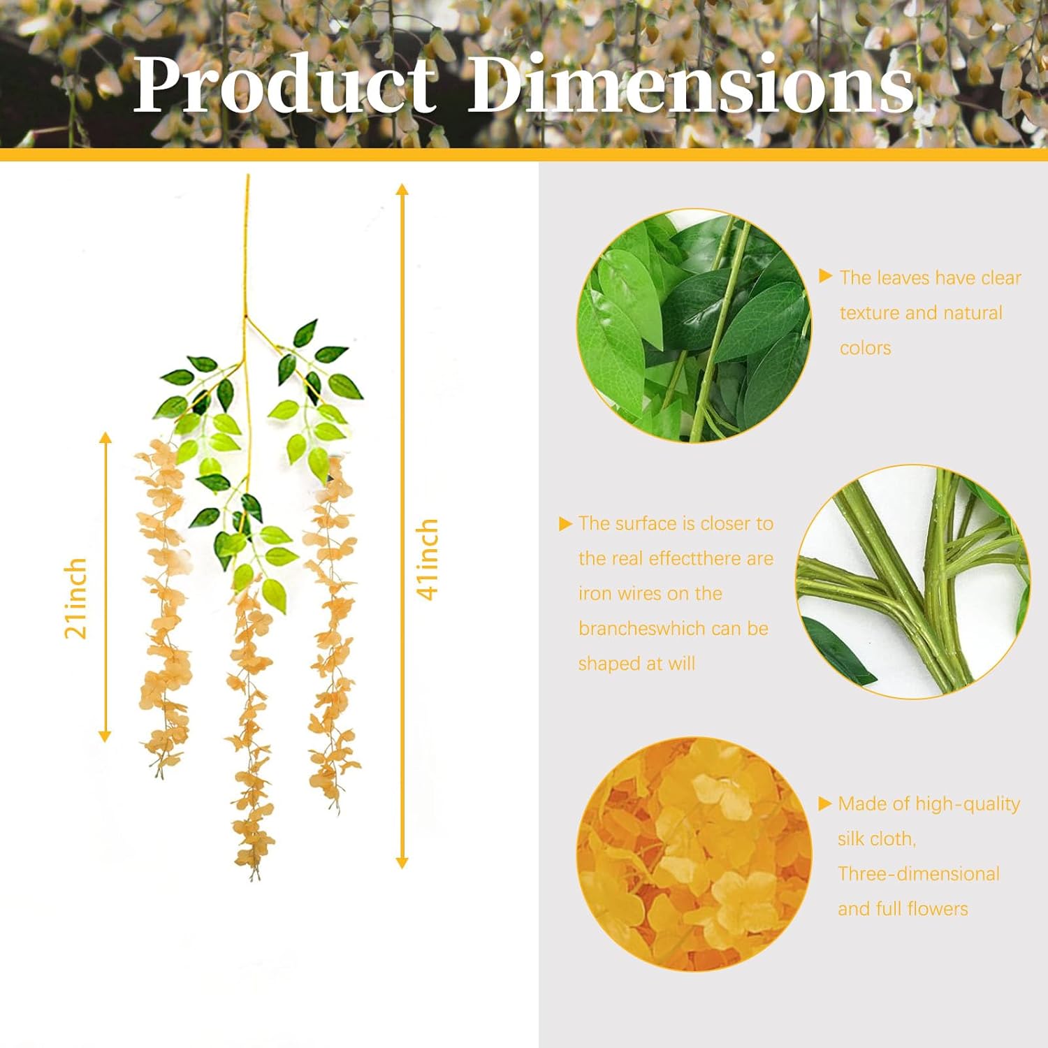- 【Cycle Used】The orange artificial wisteria garland is made of silk, the stem is made of metal wire and plastic, and it can be easily bent and recovered, so you can use it many times, very environmentally and cost-effective.