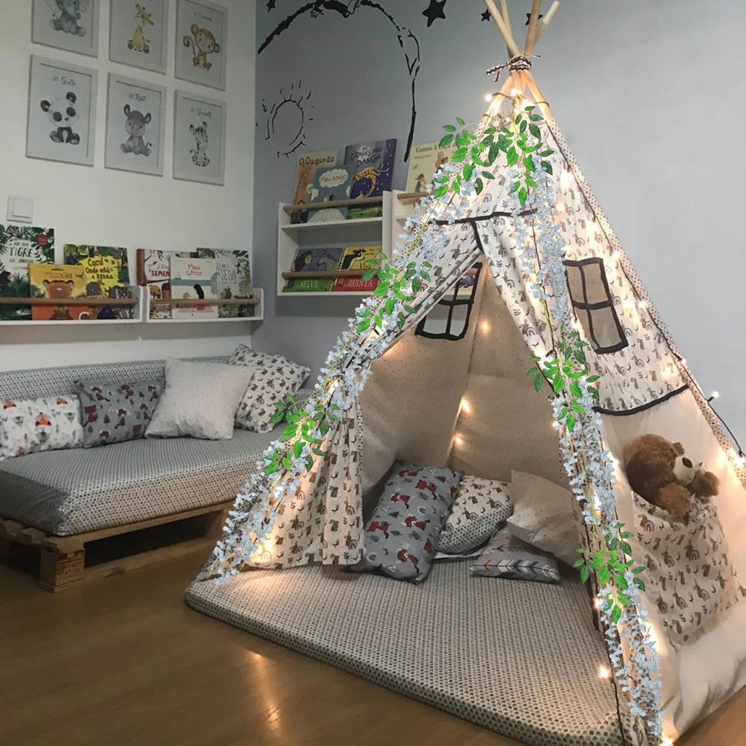- 【Grey Wisteria Garland】Whether you decorate beautiful grey wisteria hanging flowers indoors or outdoors, you can achieve a magical decorative effect. Decorating the interior makes your home look full of life while decorating the exterior makes the environment more springy.