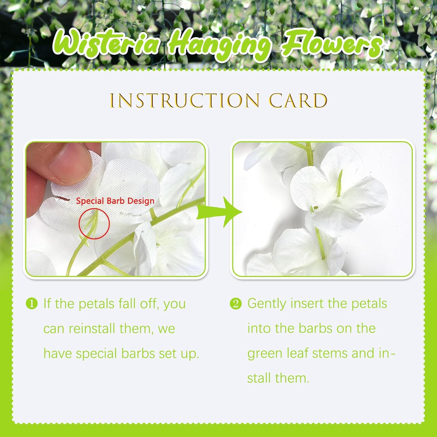 - 【Easy to Install】The green wisteria flower vines stem are made of durable metal wire and covered with plastic. You can bend the wisteria flower in any shape to satisfy your decoration imagination without damaging it. And the wisteria flower is very easy to install and remove, you can reduce a lot of troubles on installation.