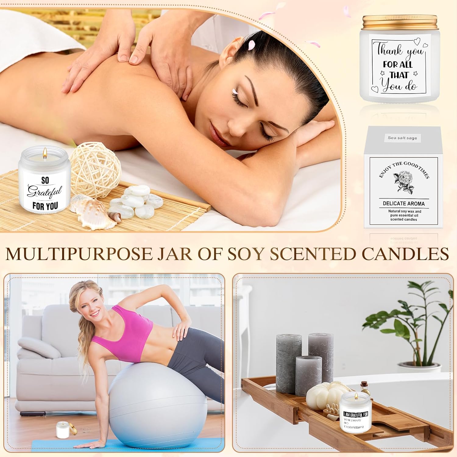 - Quality Soy Wax: our scented thank you candles gift use natural soy wax to keep the scent for a long time; Containing natural plant essence and a little essential oil, they smell refreshing, which can help you create a relaxed and pleasant atmosphere