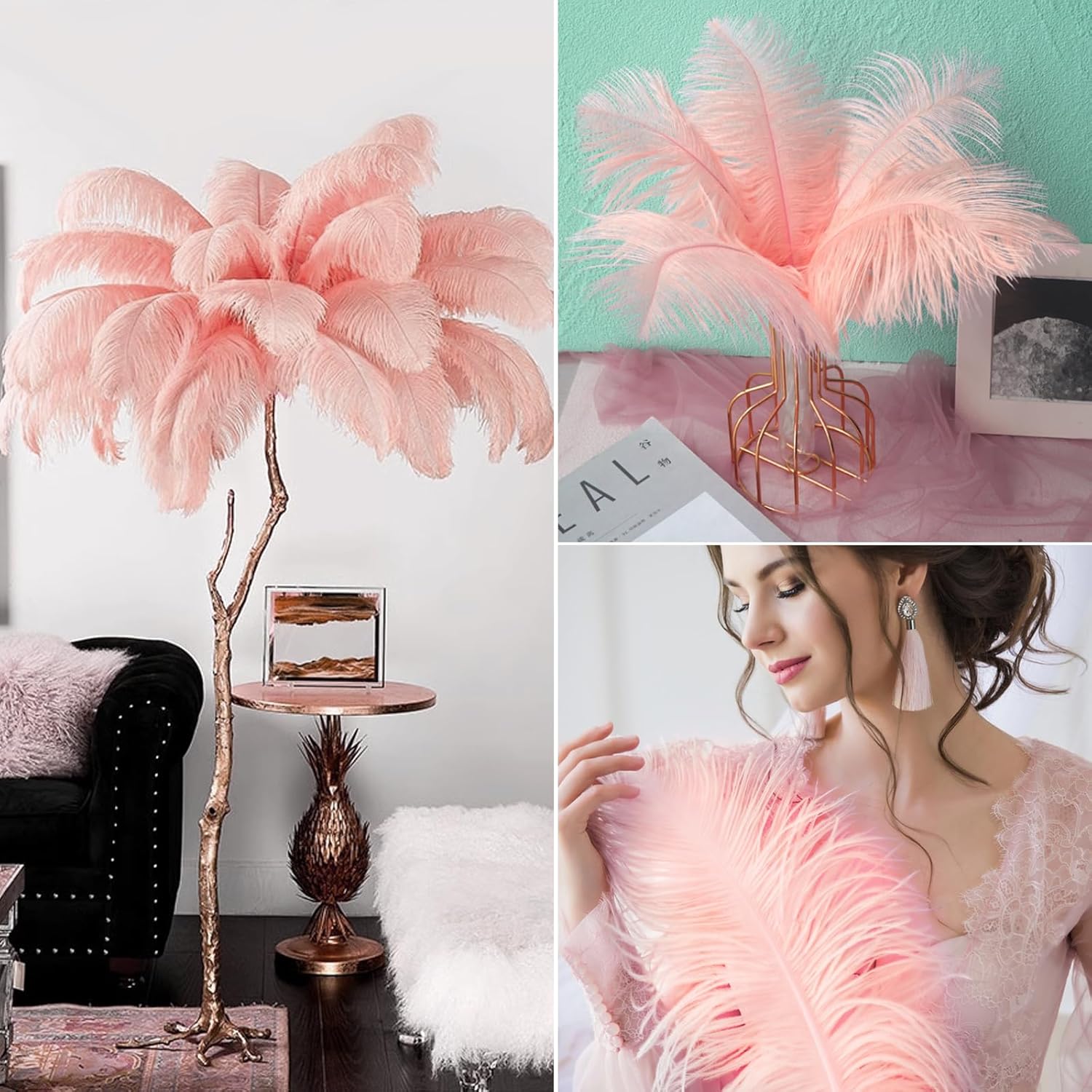 NEWONG 30pcs Rouge Pink Ostrich Feathers Natural Bulk 9-12in(23-30cm) Vase Craft Wedding Home Party Centerpieces Christmas Day Decoration