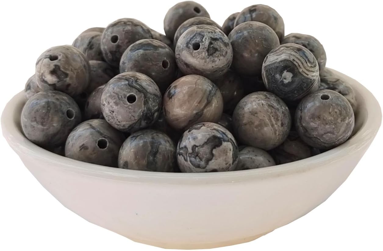 Stone Beads 10mm 60pcs Map Jasper Beads Round Loose Gemstones Beads for Bracelet Necklace Jewelry Making (10mm, 61012 Map Jasper)