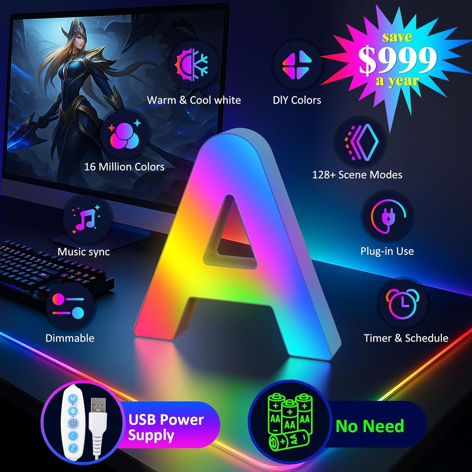 - Smart APP and DIY: LED letter lights can be freely controlled by smart APP, with hundreds of different colors and rhythm light effects. The LED lights are colorful, durable and adjustable in brightness, you can also DIY your own unique colors and combinations to suit the ambience of the room