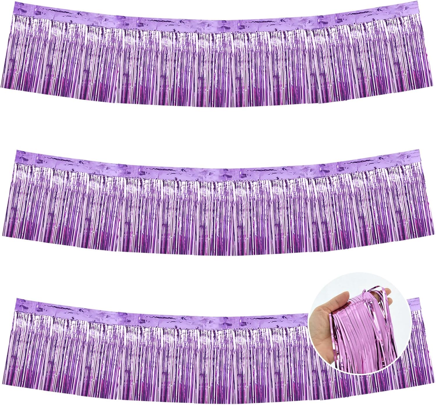 BEISHIDA 3 Packs Metallic Foil Fringe Garland Light Purple Wall Hanging Tinsel Fringe Banners for Car Floats Bridal Shower Wedding Birthday Easter Graduation Holiday Party Decoration(30 Feet)