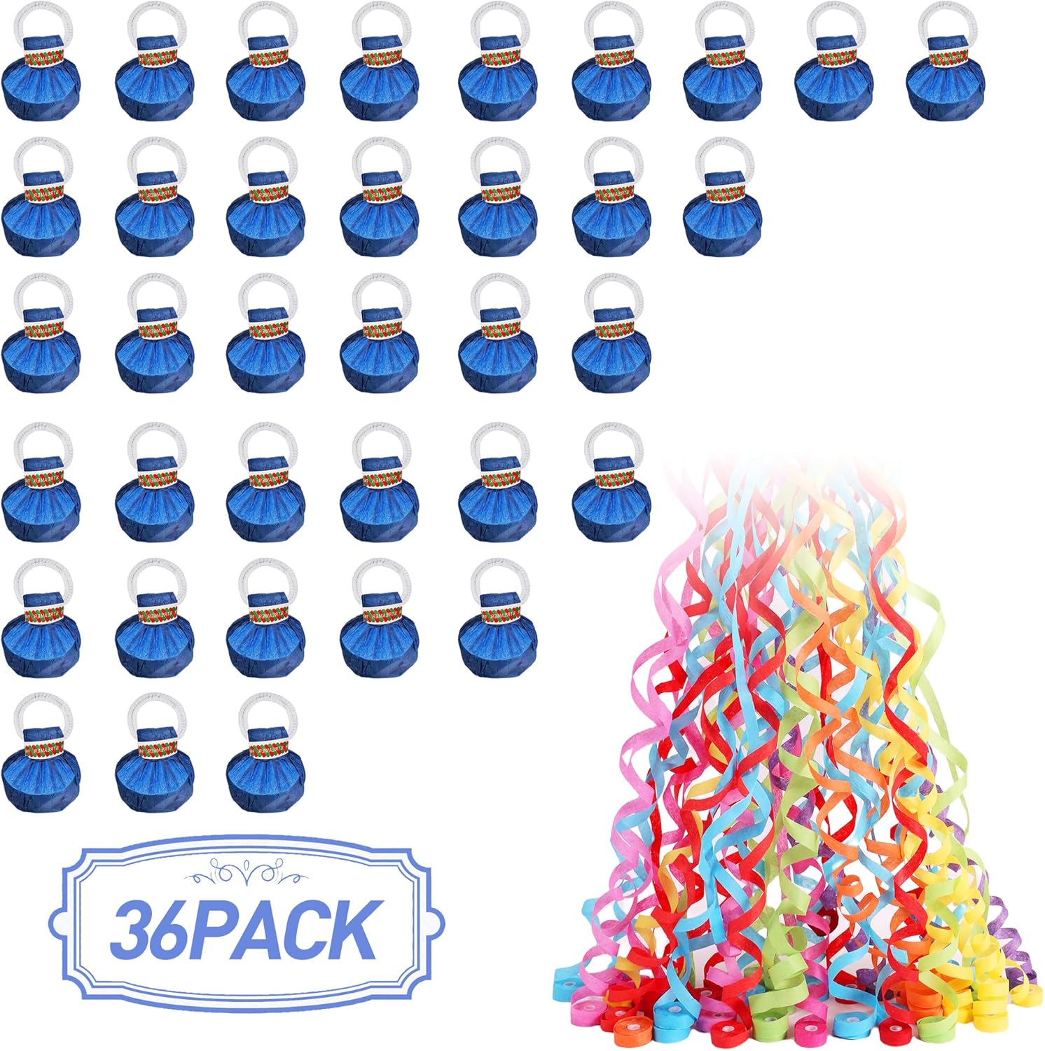 No Mess Streamers Poppers,36Pack Colorful Party Favors Confetti Shooters,Wedding,nye,School Opening,Graduation,Retirement Party (blue multicolor 36pack)