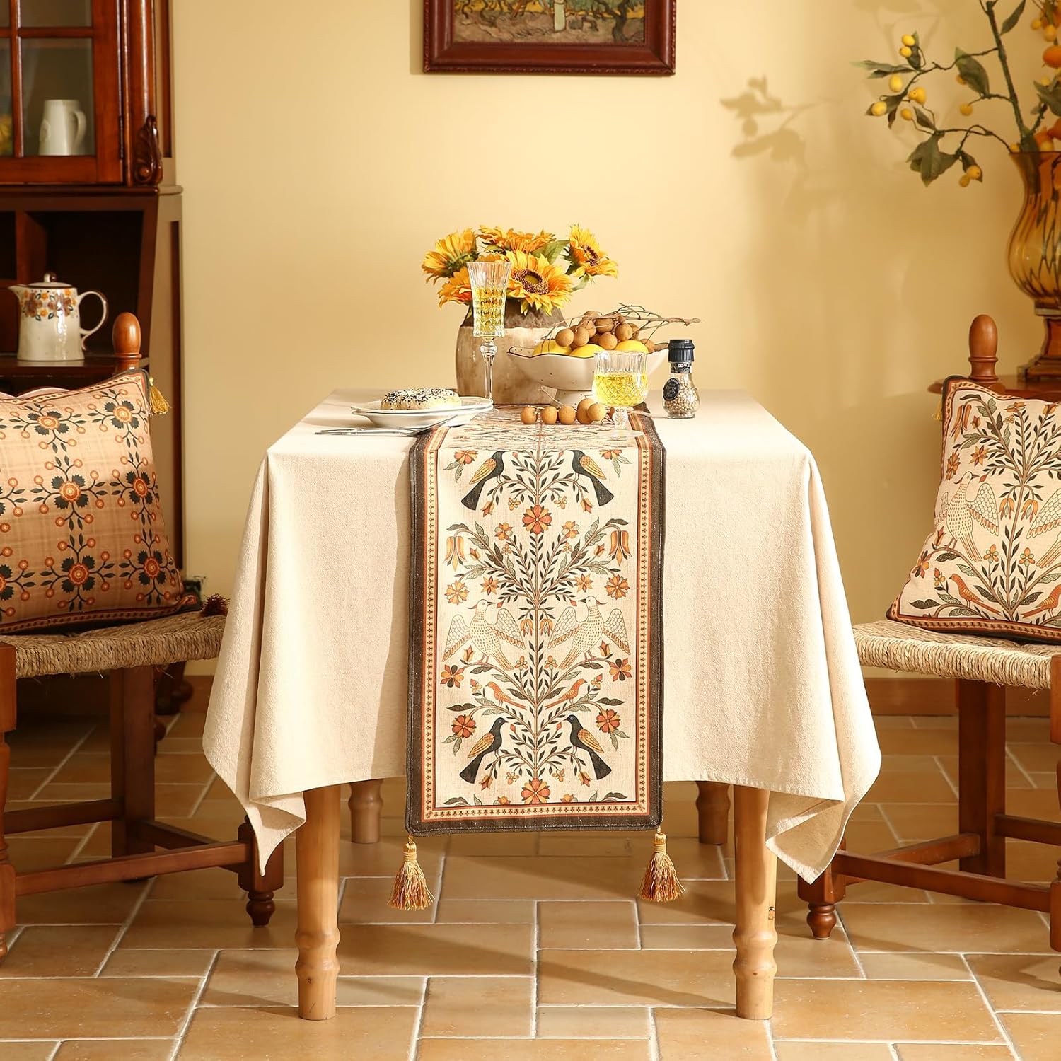Vintage Linen Table Runner 87 Inches Long,Floral Print Italian Rustic Runner for Coffee Table Decor Tabletop Table Runners for Kitchen,Dining,Party,Home,Christmas,12"*87"