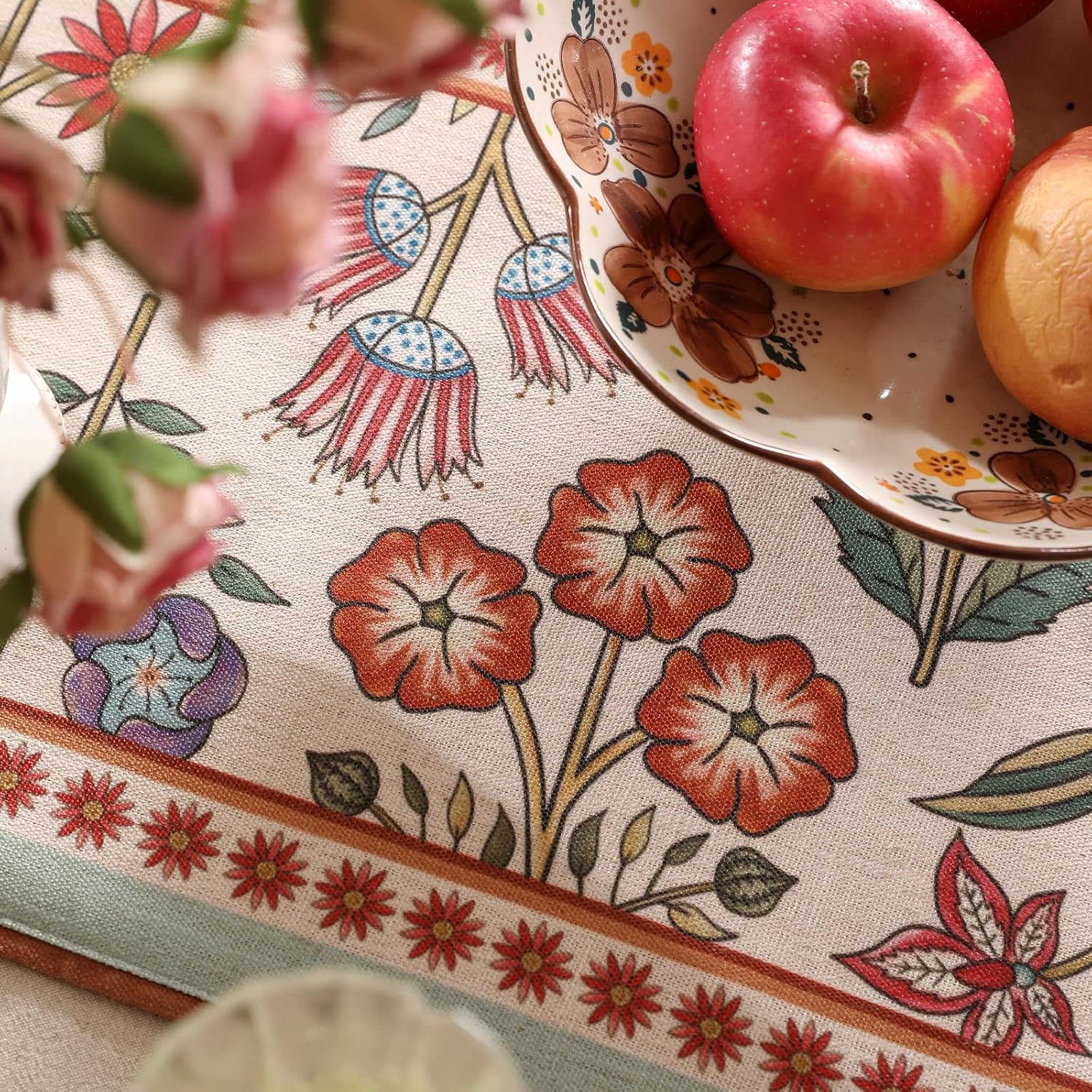 Decorative Linen French Table Runner 71 Inches Long,Green Floral Rustic Runner for Table Decor Tabletop Table Runners for Kitchen,Dining,Tea Party,Home,Christmas,12"*71"
