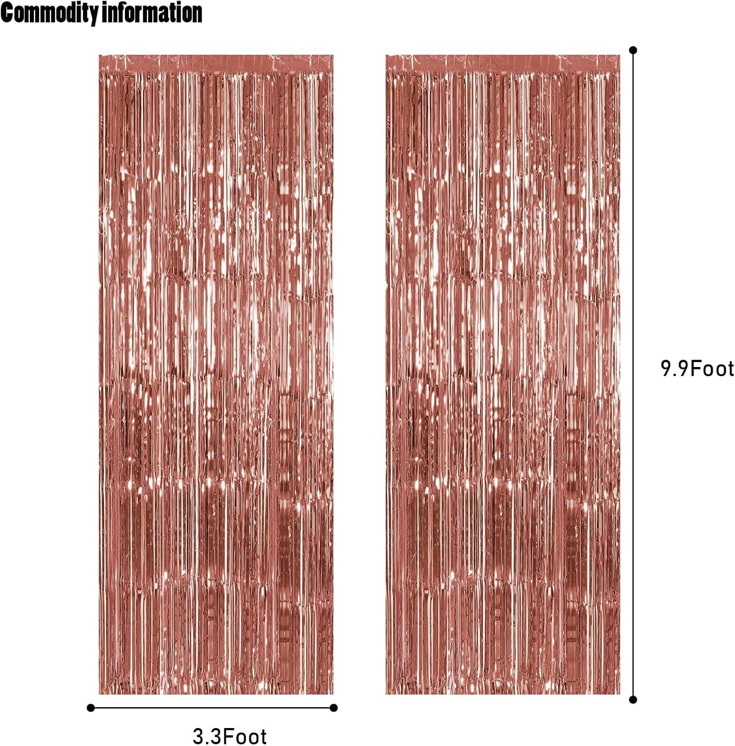 - 🎉PACKAGE INCLUDED : 2 pack of rose gold foil fringe curtains, the size of each tinsel curtain is 3.3 ft x 8.2 ft, enough length for hanging on a door or covering a wall fully, suitable for any parties.