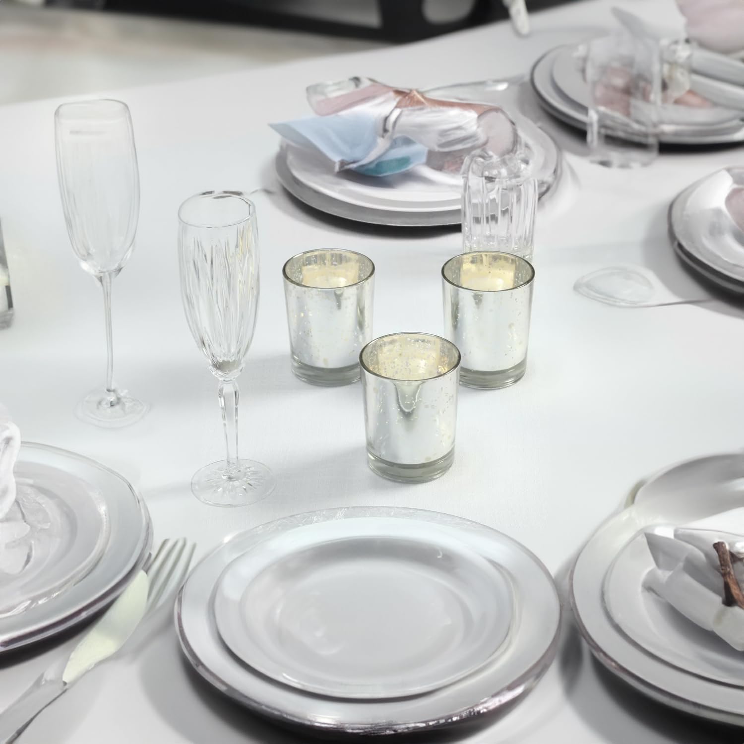WGV Silver Speckled Tea Light Votive Candle Holder 2.2x2.75, Small Tiny Utility Cylinder Mercury Glass Vase, Home Accent Decor, 24 Pieces