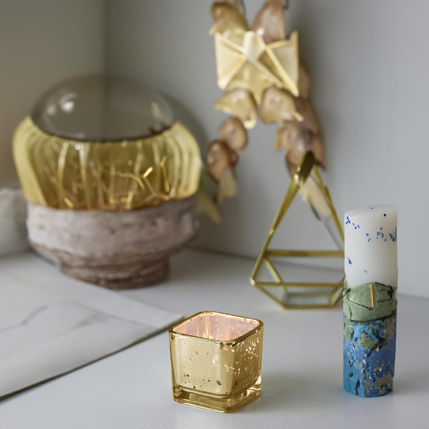 WGV 2 Inch Gold Speckle Square Cube Glass Votive Candle Holder, Small Tiny Mercury Tea Light 2x2”, 1 Pc