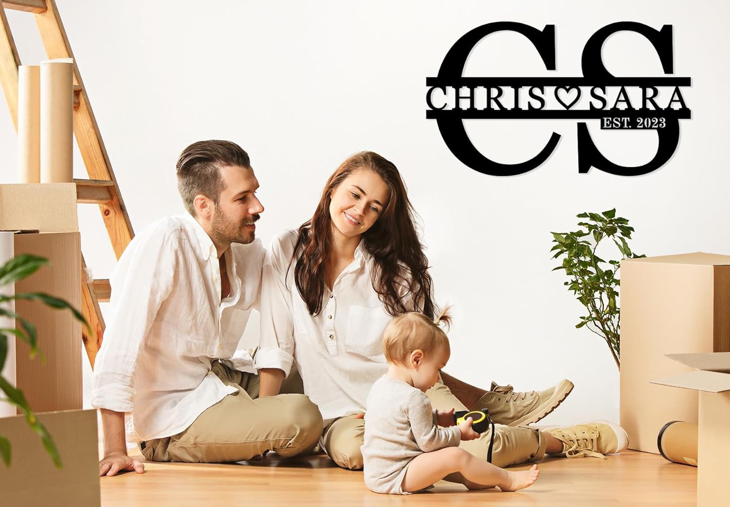- Stylish Split-Letter Design – Features a modern, split-letter monogram layout for a contemporary twist, perfect for showcasing your family name on doors, patios, or indoor walls.